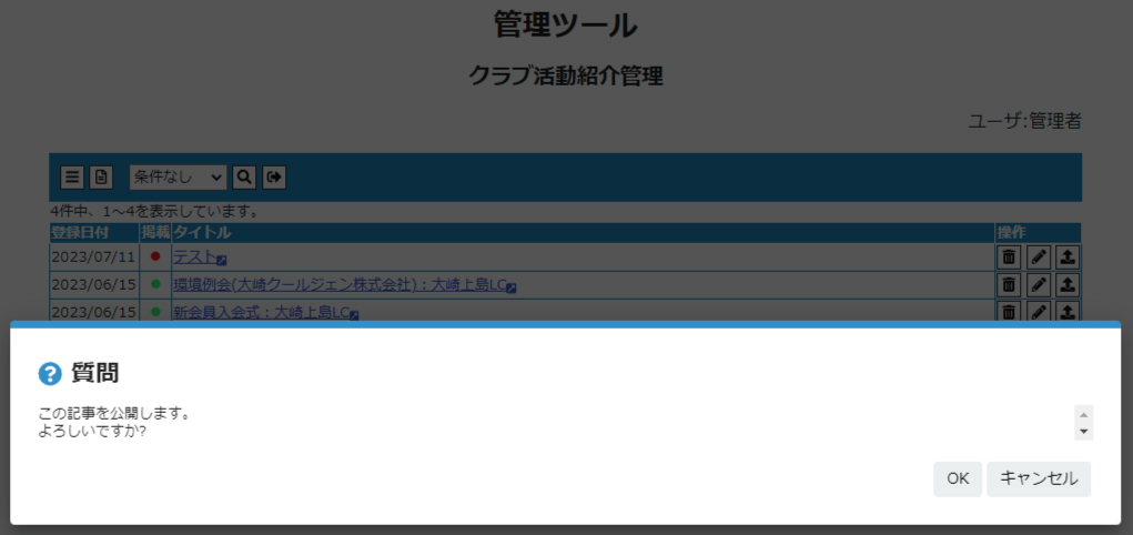 記事を公開していいかを訊ねてきますので OK をクリックします。