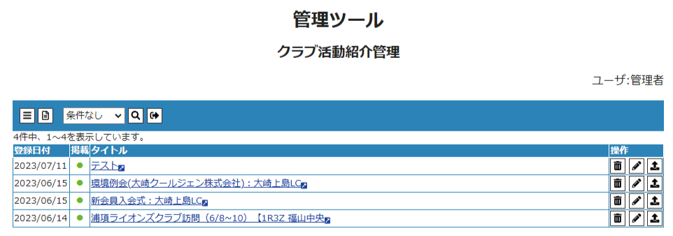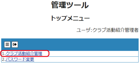 ③トップメニューの クラブ活動紹介管理をクリックします。