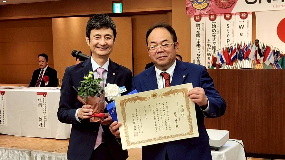 前年度地区役員や三役への感謝状贈呈、モナーク・シェブロン35年、30年、20年、10年の皆様を称える表彰に続き、親クラブである福山中央ライオンズクラブへの感謝の意を感謝状贈呈をもってお伝えいたしました。