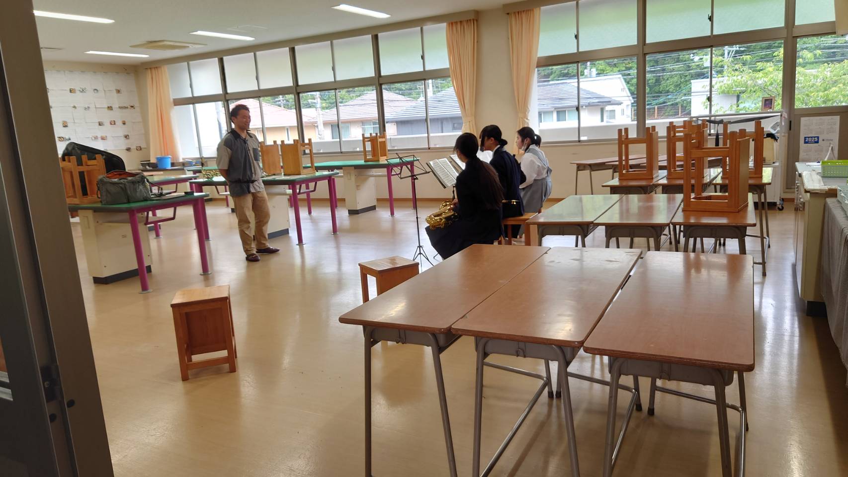 クラブ活動紹介 前日までの雨から一転。5/10(土)心地よい風が気持ちよい日に大竹中学校にて「バンドクリニック」を開催しました。