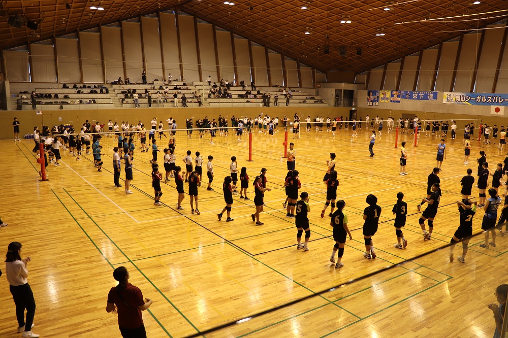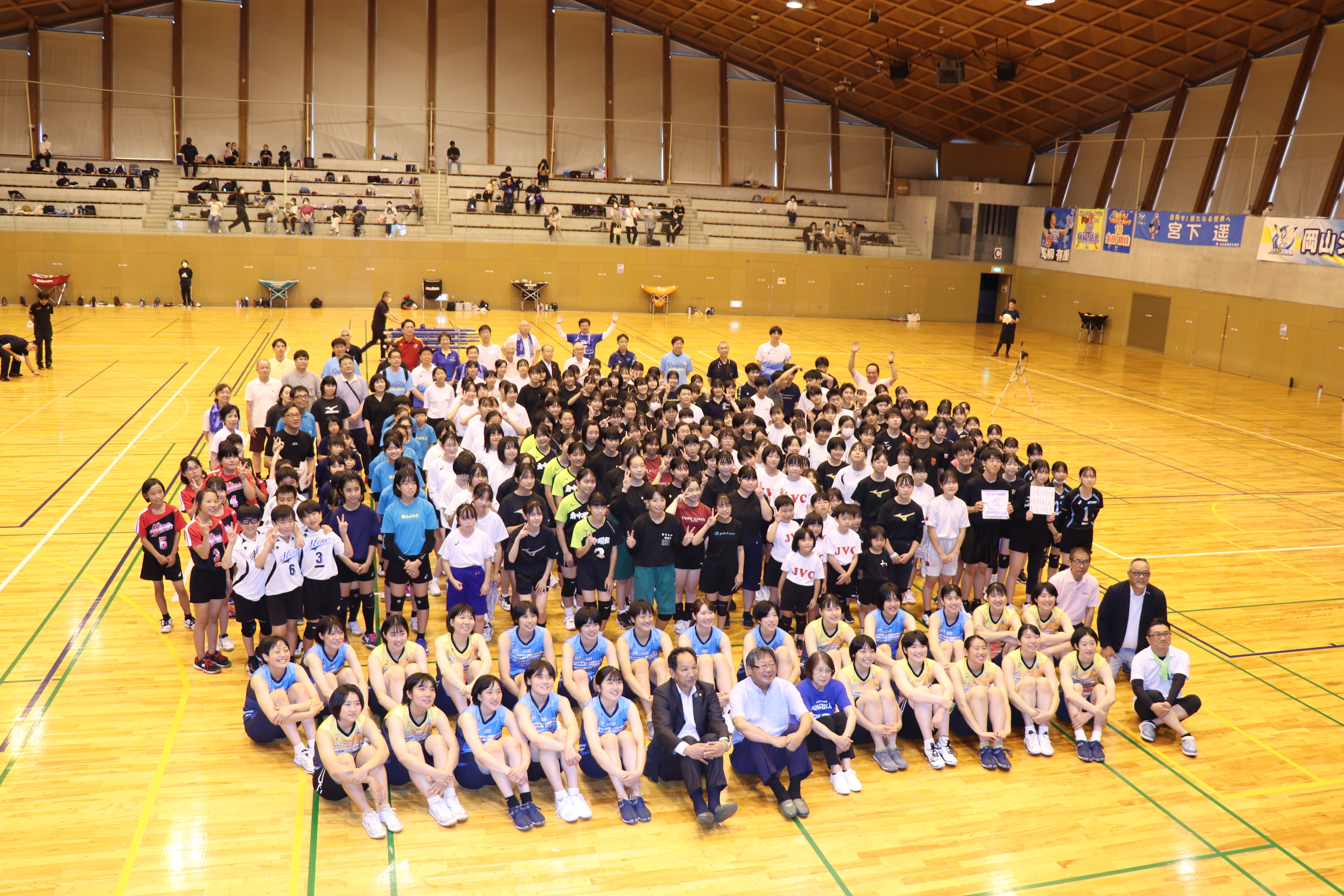 15チーム、223名の参加者が集まり、午前中は模擬試合を見学、午後は岡山シーガルズの選手から熱心に指導を受けることができました。