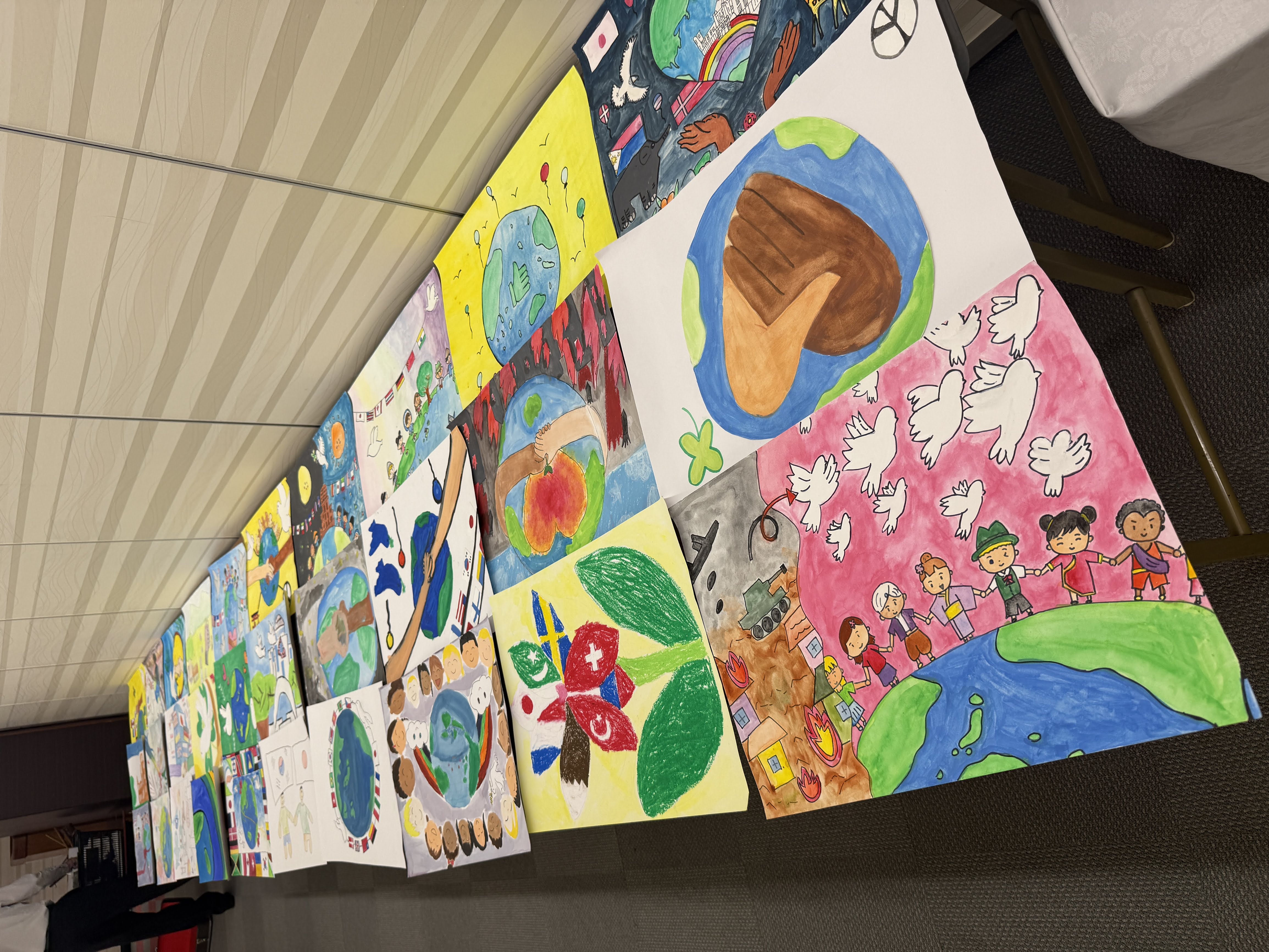 メンバーによる慎重な審査の結果、最優秀賞1点、会長賞1点、佳作2点が選ばれました。いずれの作品も、平和の尊さや未来への希望を力強く表現しており、審査員一同深い感銘を受けました。こうした子どもたちの取り組みが、次代を担う若い世代に平和の大切さを伝える大きな契機となることを願っています。