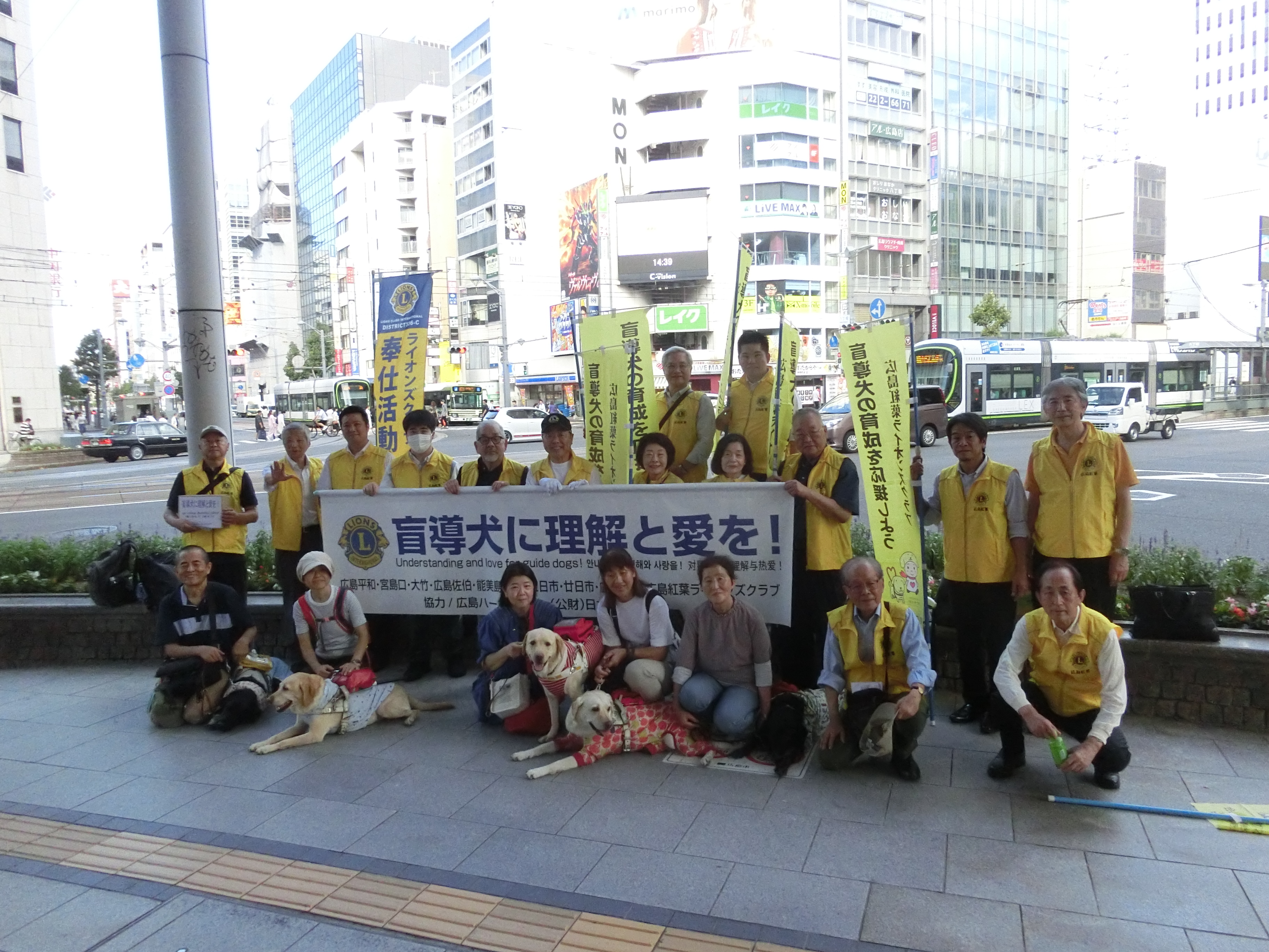10月11日、広島市八丁堀交差点で盲導犬支援の為の街頭募金を行いました。当日の募金額は15万円を超え、広島ハーネスの会へ全額寄付致しました。