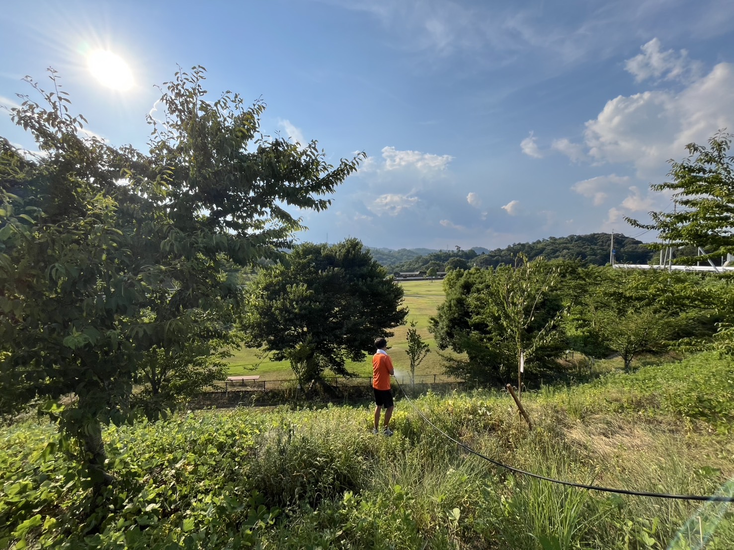 福山市グラウンドゴルフ場・福山市立ふたば保育所に植樹&植え替えを行ったサクラ48本に、各週の担当委員会が7月~9月の3ケ月間水やりを実施します。