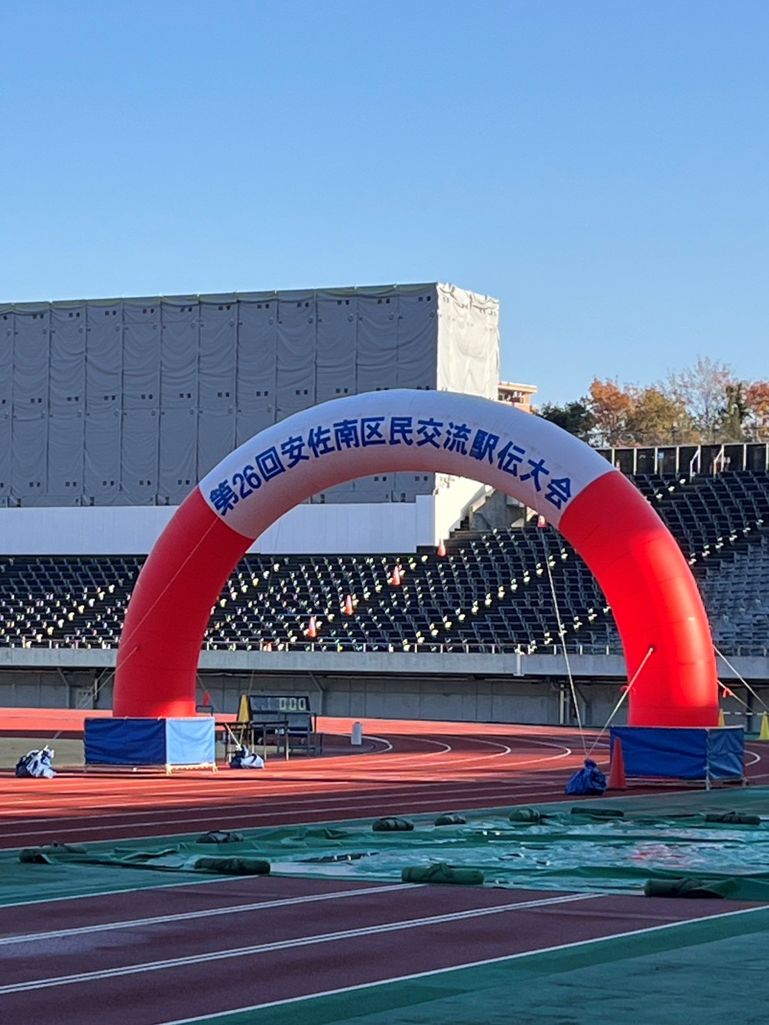 寒空の中、今年も64チームの参加にて安佐南区民交流駅伝大会が開催されました