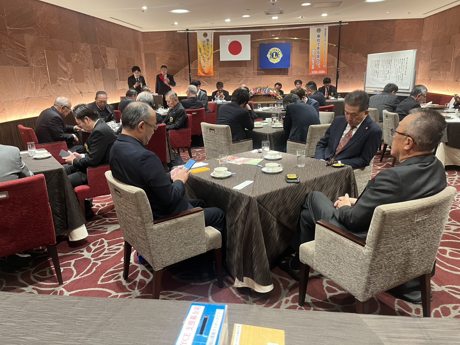 福山ニューキャッスルホテル1Fロジェにて、第1521回例会(12月度第2例会)が開催されました。本日は、12月にお誕生日を迎えられる方へのお祝いや、次年度指名会、新年例会や薬物乱用防止教室、ふくやまコーラスフェスティバルの案内、YCE冬季台湾派遣受入事業に関する説明等が行われました。