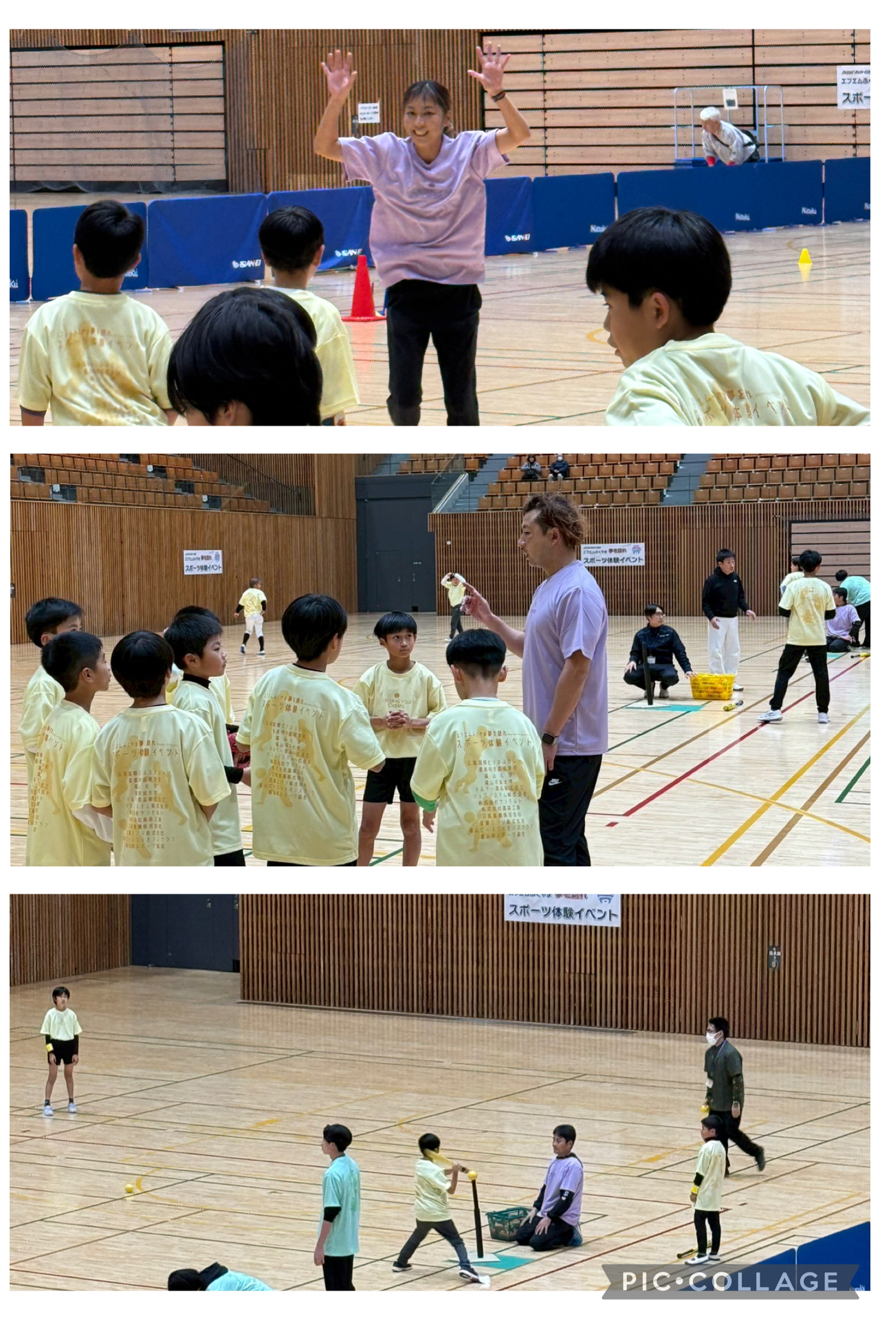 継続事業のスポーツ体験イベントを12/25(木)エフピコアリーナふくやまに於いて市内の小学生約60名が参加で行いました。元広島カープの今村猛さん、元オリンピック女子マラソン日本代表の坂本直子さん、実業団JFEバレーボール部の皆様を講師として野球、陸上、バレーボールの三種競技をすべて体験してもらいました。