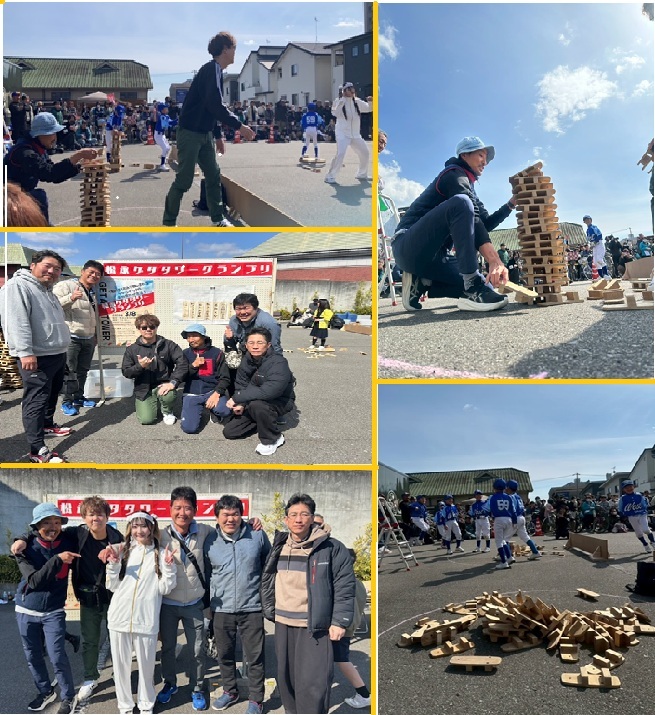 地域で活動している各種団体、小学生チーム、高校生チーム、大学生チーム、少年野球チーム、インターナショナルチーム、企業チーム、我がライオンズクラブと種々パワーは違えど地域を愛するみんなで一緒にイベントを盛り上げました。競技は、最も早く下駄を積み上げることです。中々難しかったようで、我がクラブは早々に敗れてしまいました。