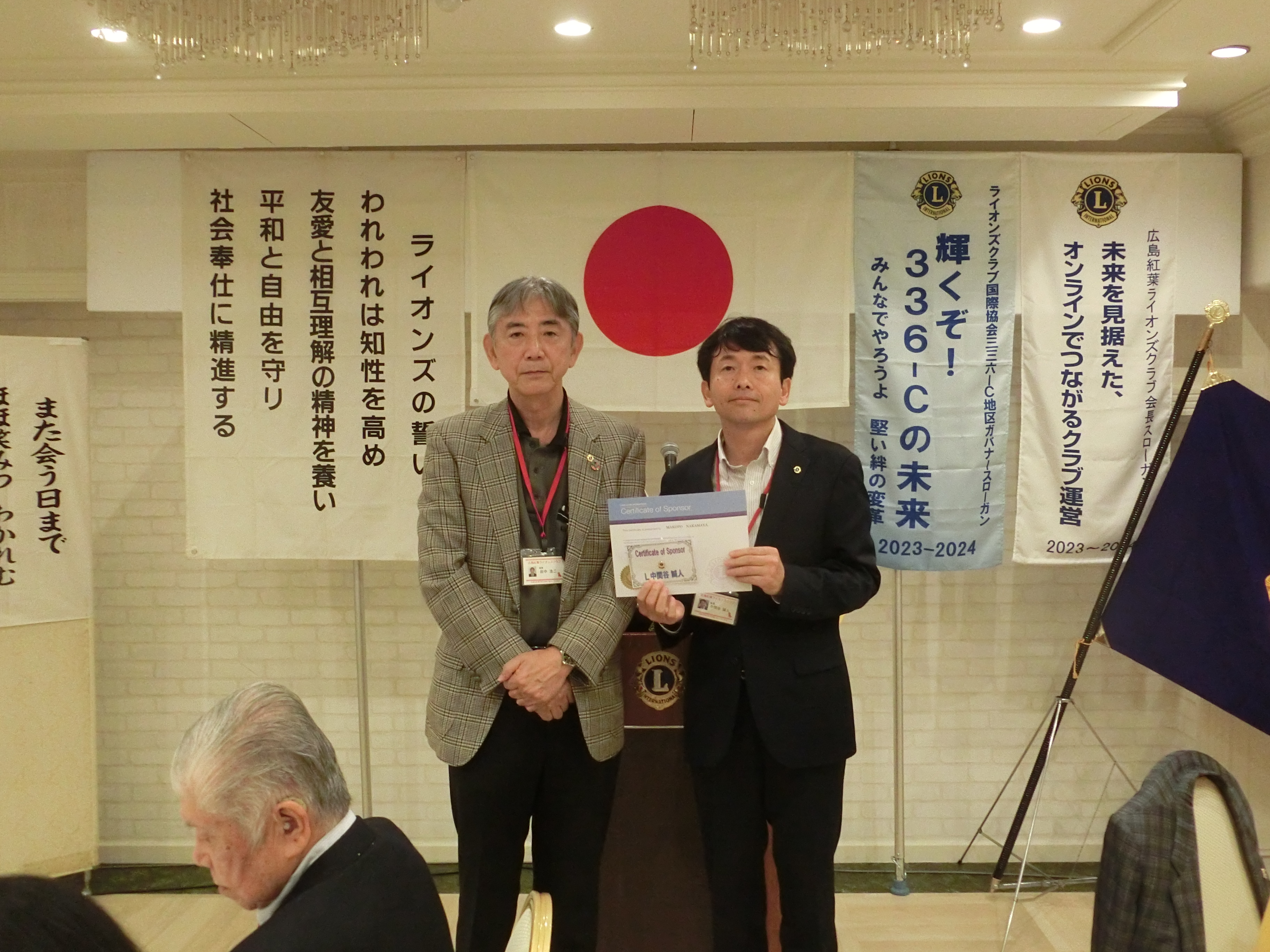 クラブ活動紹介 10月14日(土)ひろしま国際ホテルでの第946回例会において、前々回の学生会員3名の入会に引き続き、新たに1名の学生会員の入会式が執り行われました。入会式ではスポンサーである中間谷さんから入会の経緯等についての説明がなされ、田中会長から会員証が手渡されました。現状で学生会員は4名となり、今後、学生会員を中心に行われる予定の薬物乱用防止啓発活動に向けて体制が整いつつあります。