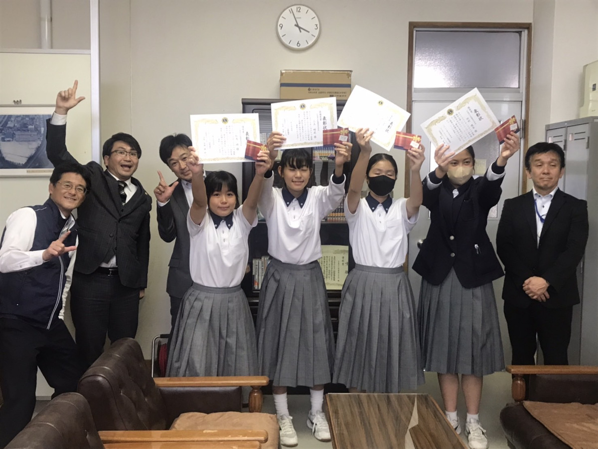 代表して最優秀賞、優秀賞の4名の生徒さん達へクラブより賞状と賞品を贈呈し、生徒さん達が大変喜んでくれました。ご協力いただいた校長先生、担当教諭など関係者の皆様に感謝申し上げます。