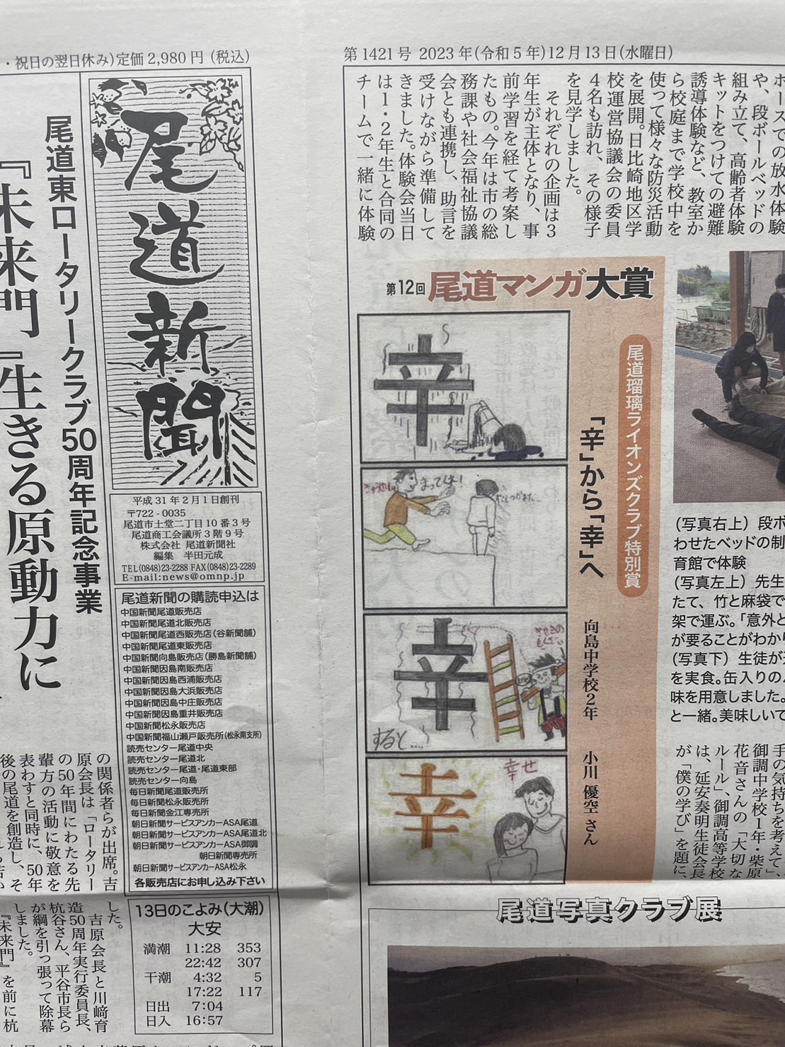 CN60周年記念事業として、尾道マンガ大賞に尾道瑠璃ライオンズクラブ特別賞を進呈しました。今日の尾道新聞に、受賞作品が掲載されました。