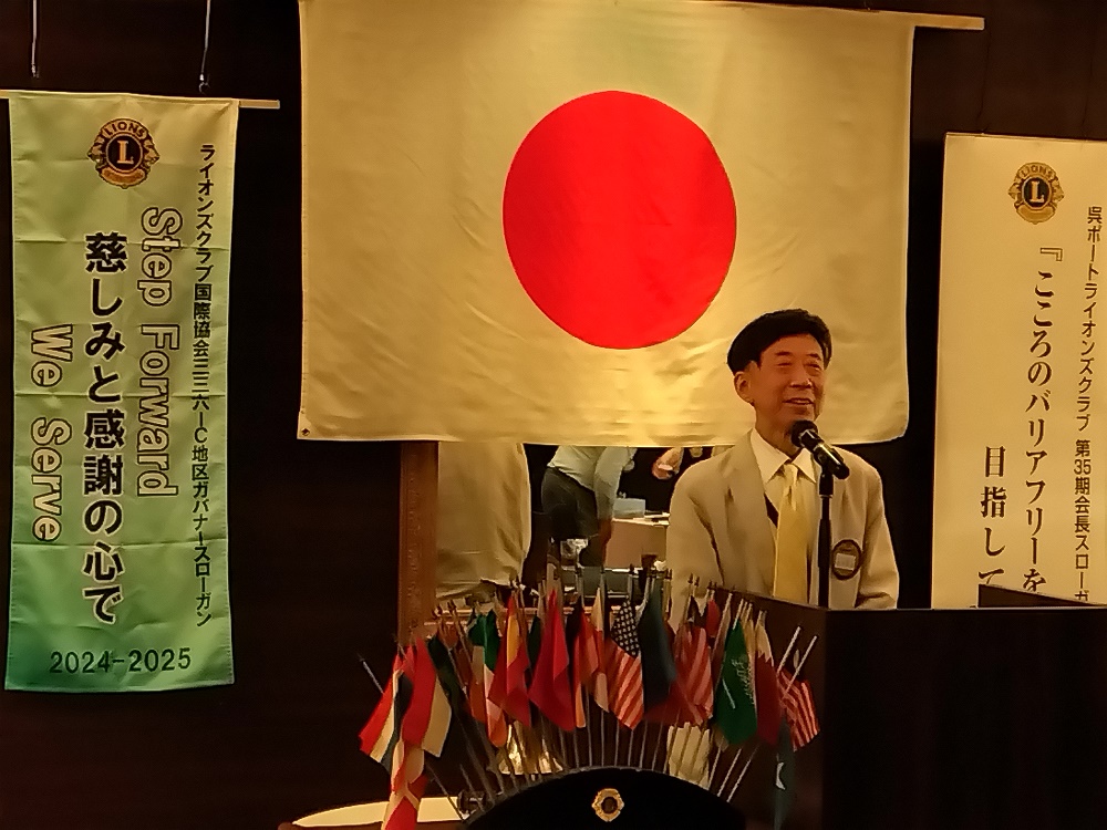 7/4 今期1回目の例会開催、会長L佐伯が会長方針を発表・心のバリアフリーを目指して(タイトル)