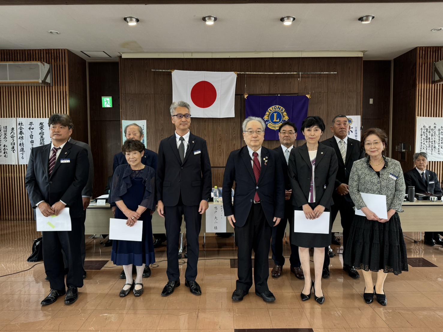 また、新会員5名(正会員1名・家族会員1名・クラブ支部会員3名)も迎え、鳴戸地区ガバナーより直々に認証状等書類一式を授与して頂きました