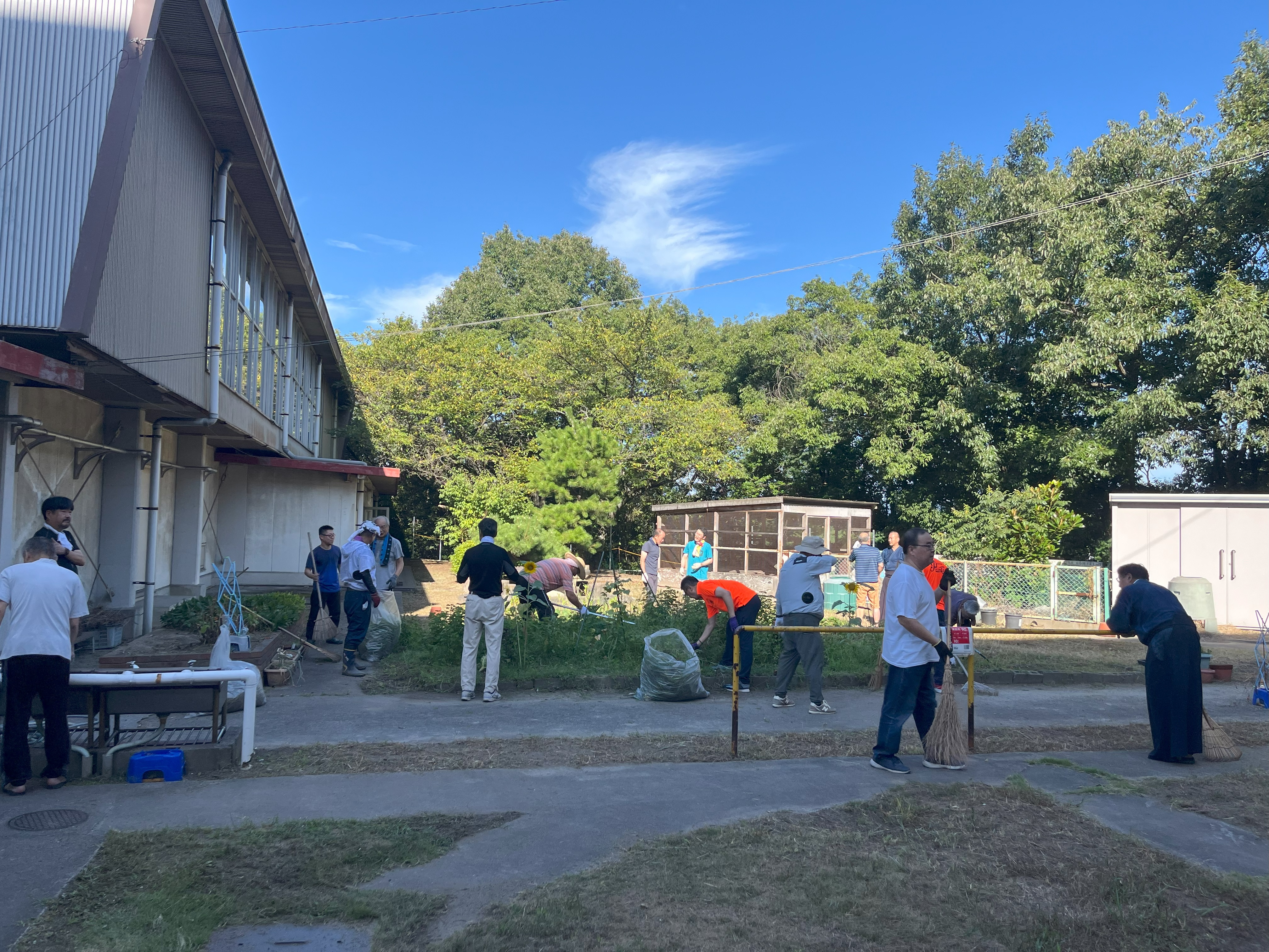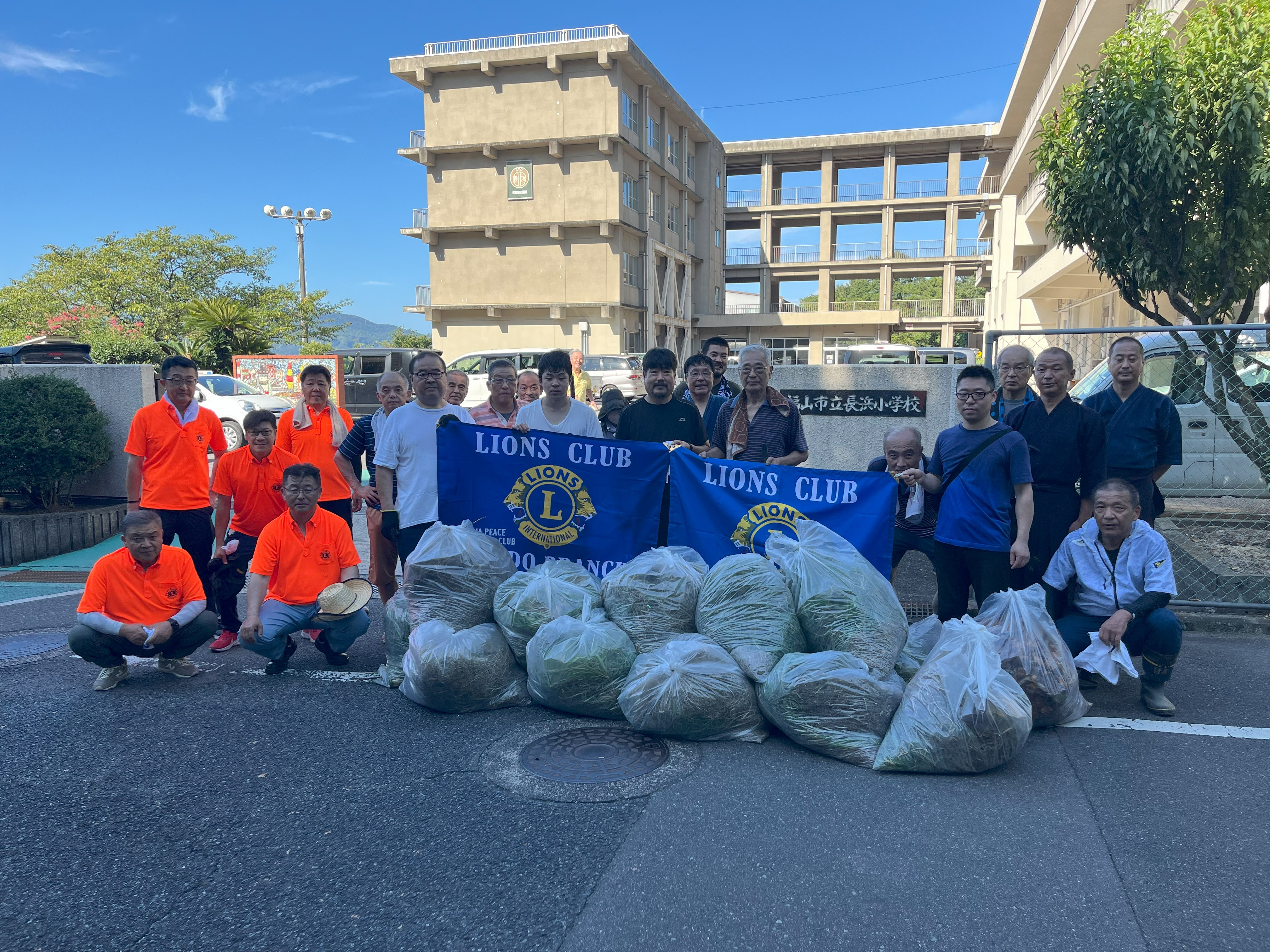 当クラブ内の剣道支部、居合道支部のアクティビティーである福山市立長浜小学校中庭清掃活動を行い、当クラブからも数名が参加しました。一般の剣道愛好家の皆さん、支部会員、当クラブ会員合計35名参加で暑い中にぎやかに活動できました。途中小学校の校長先生ほか教員の方も参加してくださいました。当クラブは支部活動も活発におこなっています。