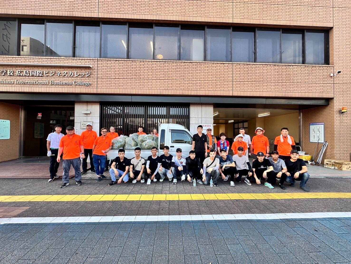 軽トラいっぱいの雑草を集めました。当クラブは積極的に外国人とも交流をはかって仲良く活動しています。