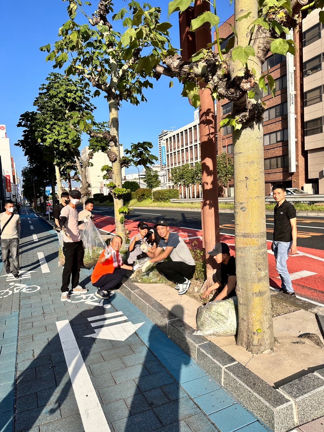 クラブ活動紹介 早朝よりクラブの継続事業である国道2号線沿いボランティアロード清掃「ばら花壇清掃」を行いました。