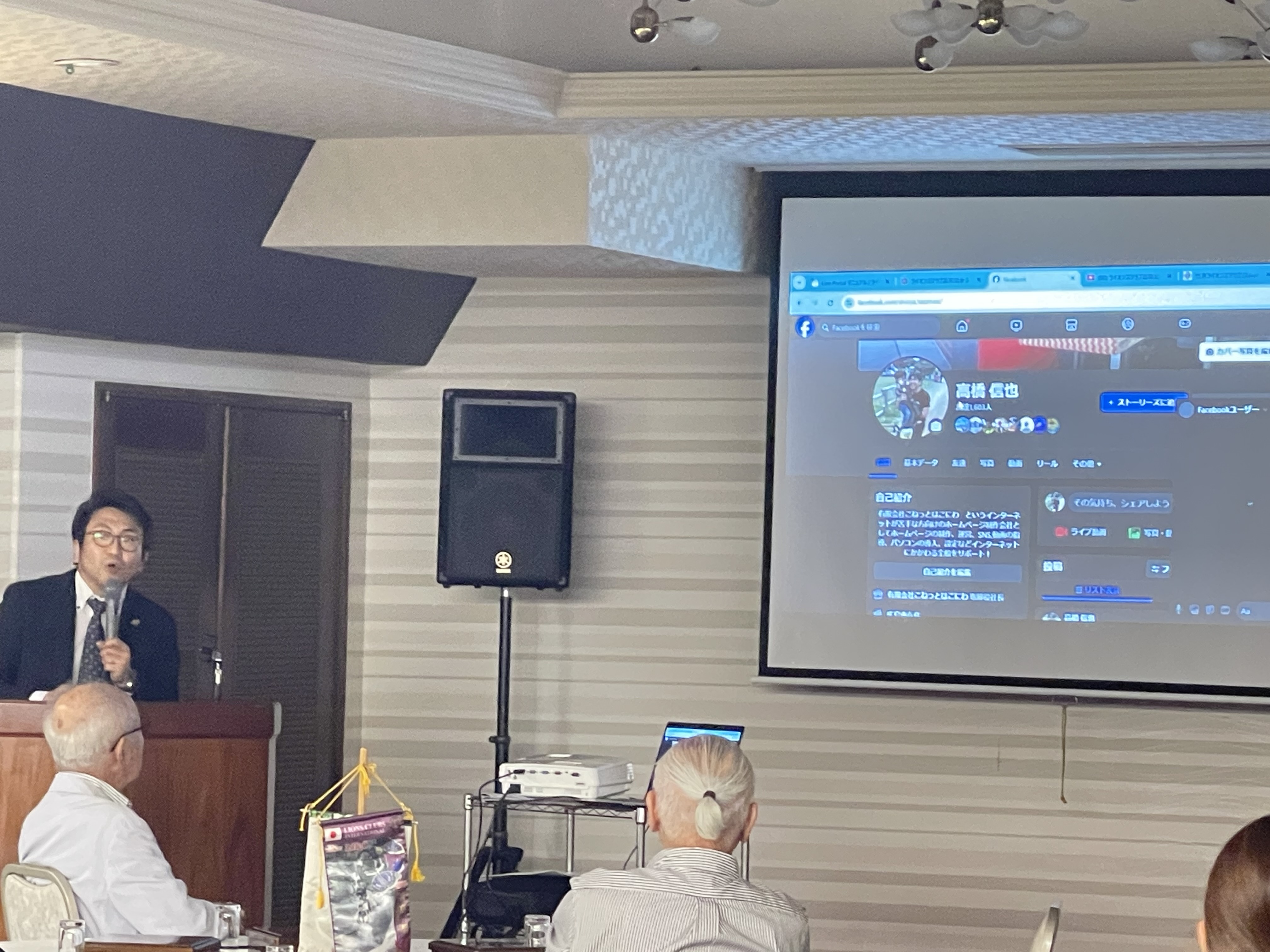 GLT・ライオンズ情報委員会の担当例会として、地区IT推進プロジェクトリーダーの髙橋信也様をお迎えし『SNSの活用』のテーマでスピーチをしていただきました。
