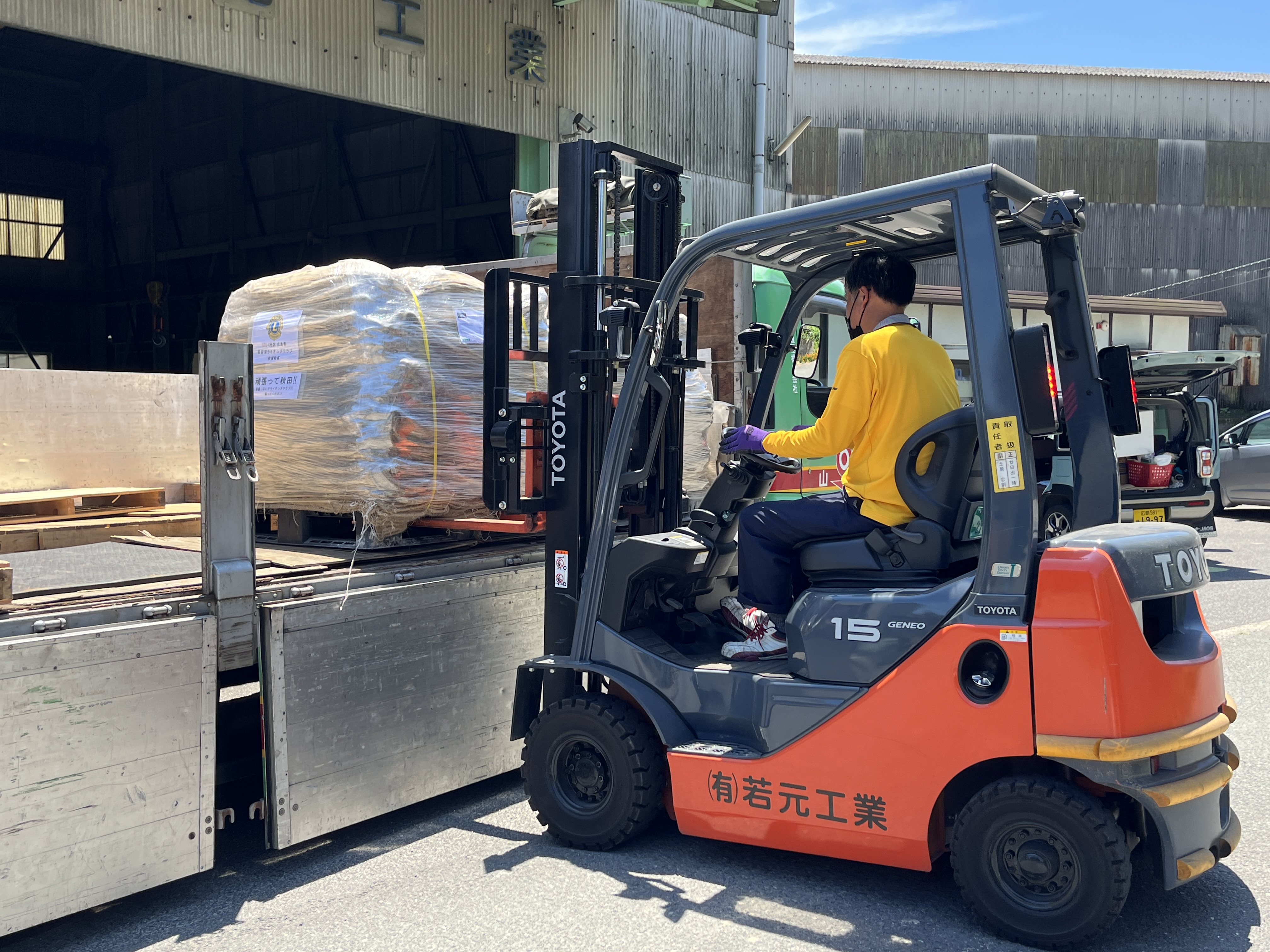 この度、当クラブは豪雨災害で甚大な被害を受けた秋田へドンゴロス(麻袋)2パレット、救援物資として贈らさせていただきました。