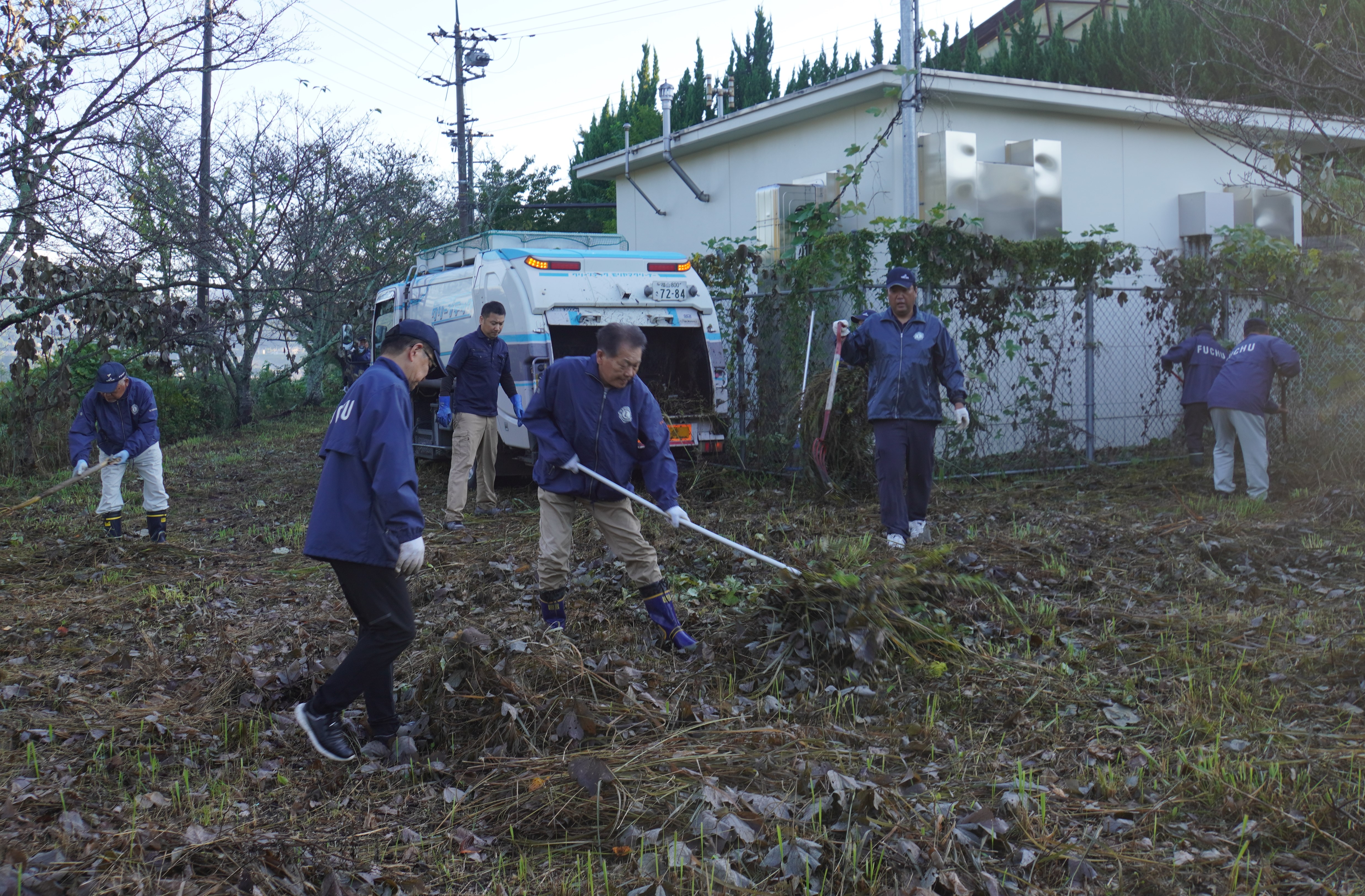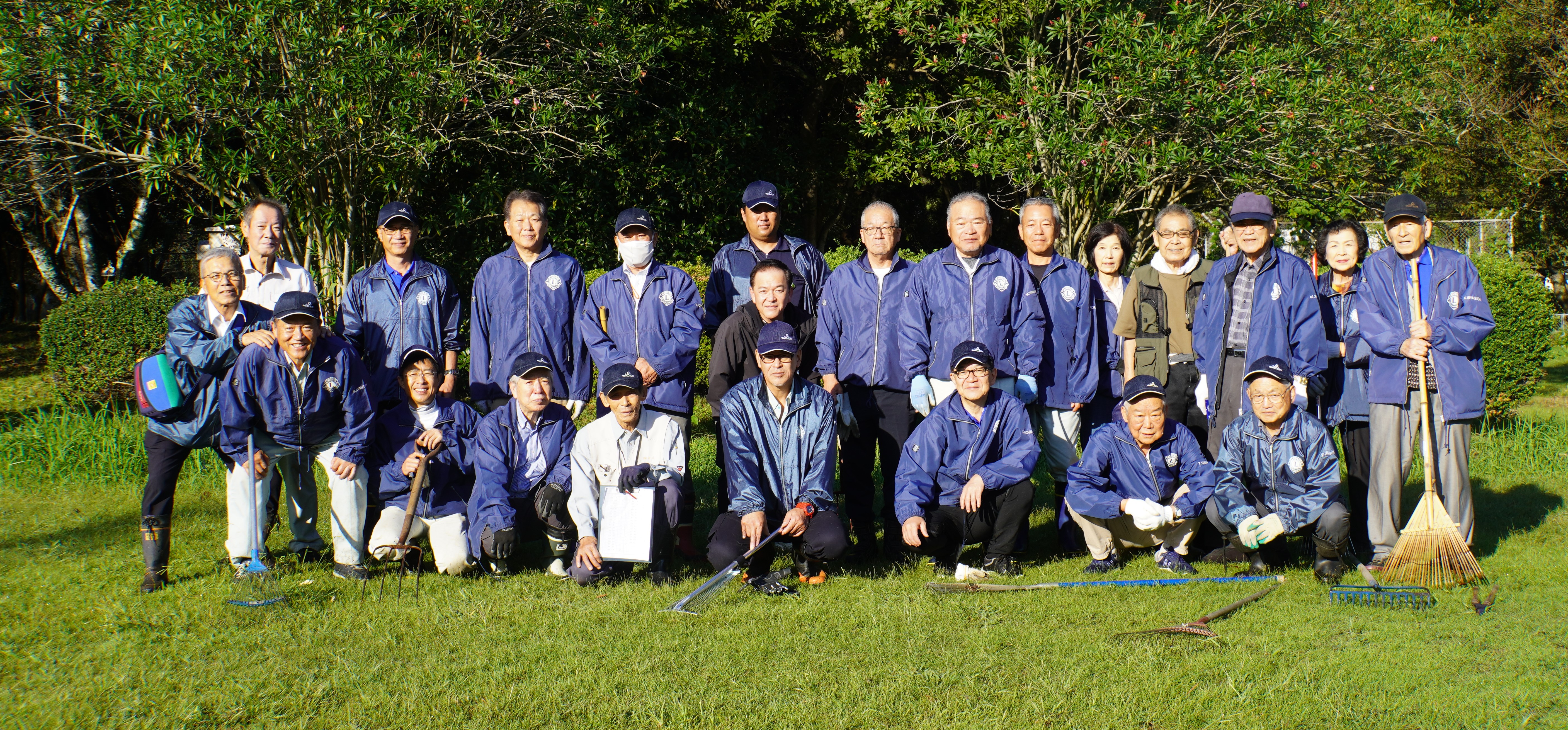 41年前に府中LC25周年を記念して植樹した府中市土生町の自称「ライオンズの森」の除草作業を、事前に府中市シルバー人材センターへ委託。10/8ライオンズ奉仕デーが雨天のため10/9に枯草とごみを会員20名で収集した。