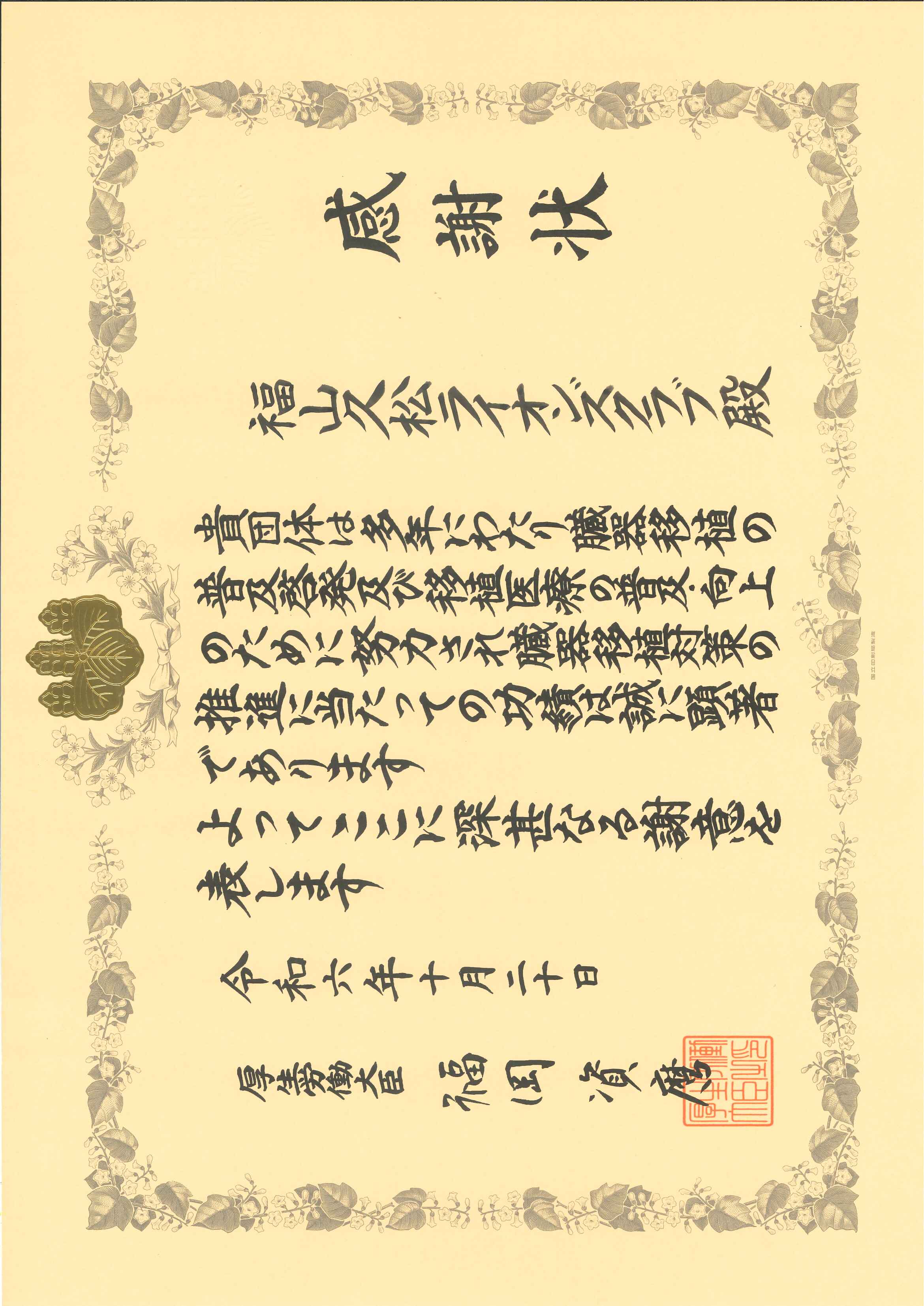 2024/10/20 厚生労働大臣感謝状贈呈式出席【1R3Z福山久松】