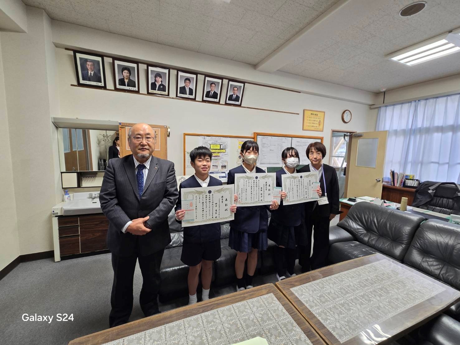 町内3校へ(中学校1,小学校2)表彰へ訪問いたしました