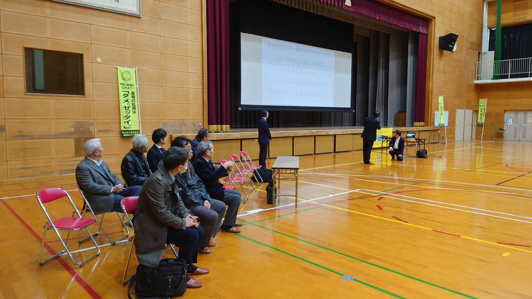 大竹市立大竹中学校にて、広島フェニックスLC主催による「ダメ。ゼッタイ。薬物乱用防止」教室に参加しました。