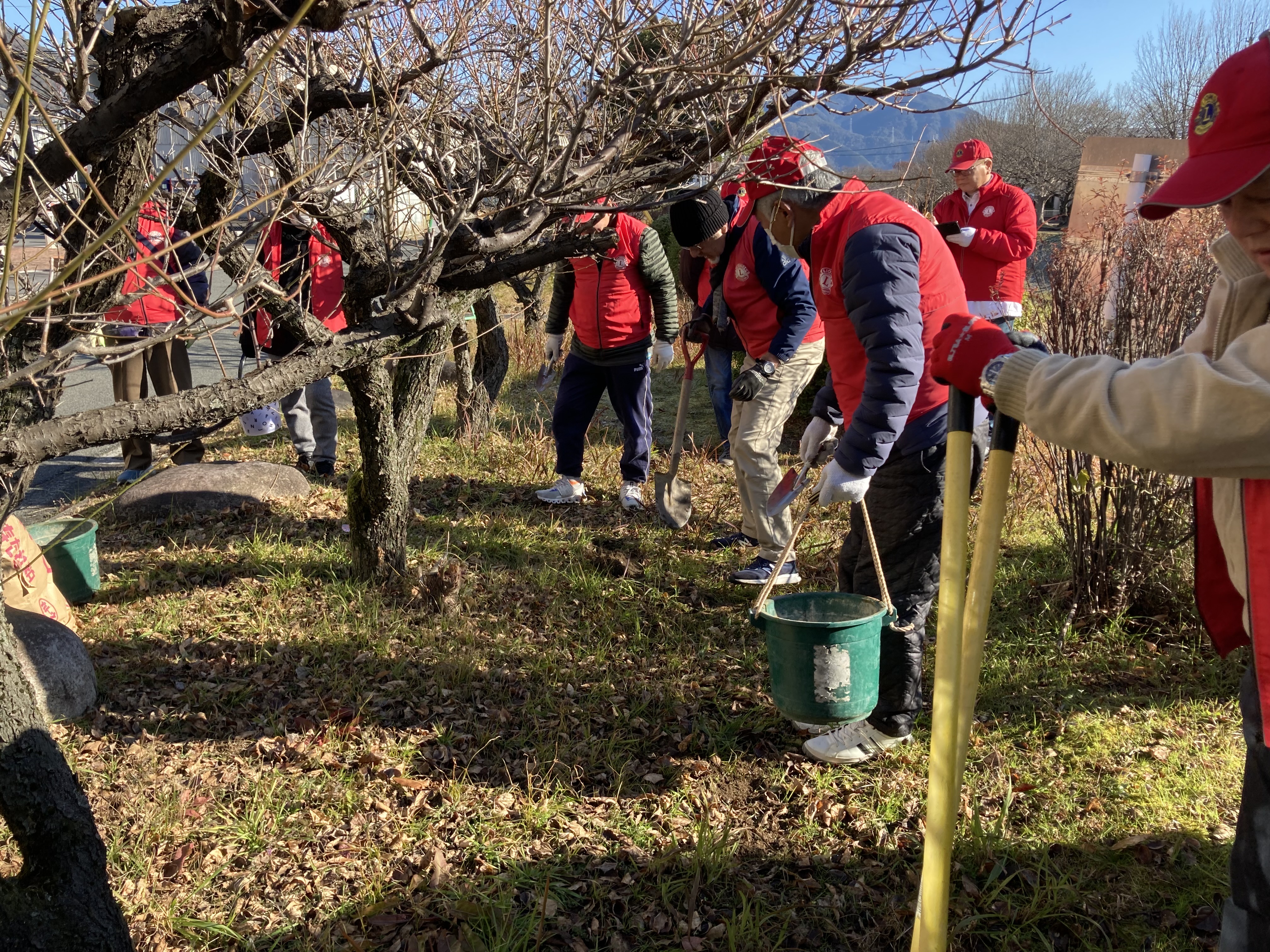 梅の木の施肥を行いました。毎年も寒さに耐えつつ、梅の木の根元に、会員の手により油粕を入れました。