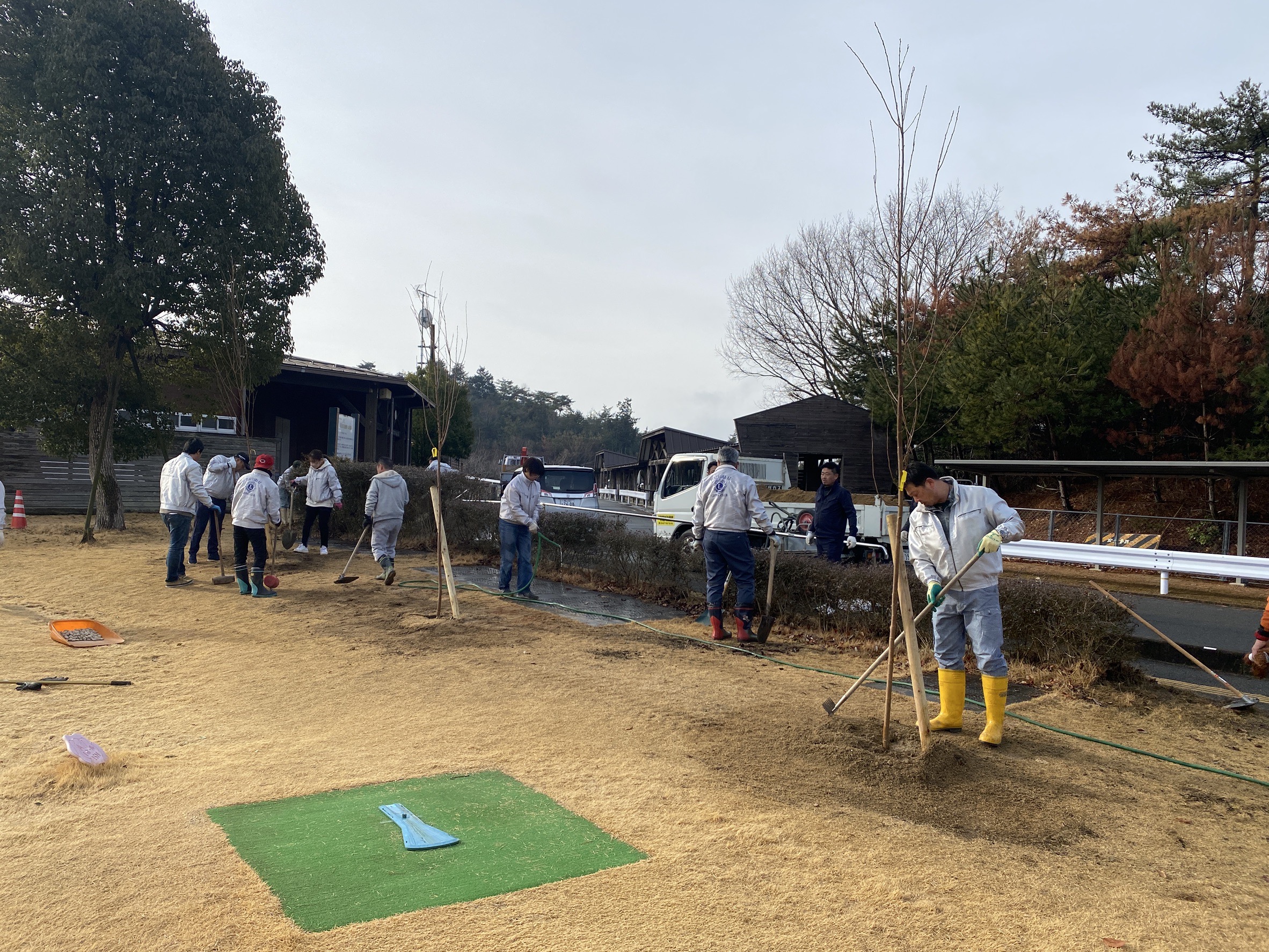 福山市グラウンド・ゴルフ場にサクラの植樹を行いました。福山市政100周年記念に植樹したサクラのうち、38本を撤去し病気に強いジンダイ・アケボノを植樹しました。また、ふたば保育所のサクラも5本を撤去し植樹しました。引き続き、サクラの保護と管理を継続してまいります。