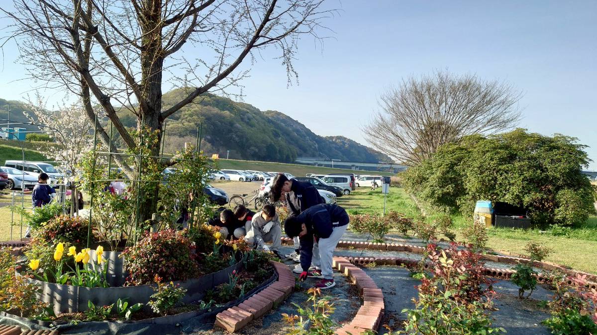 クラブ活動紹介 2025年4月12日(土)ちゃぷちゃぷらんど清掃、バラ花壇手入れ作業を行ないました。