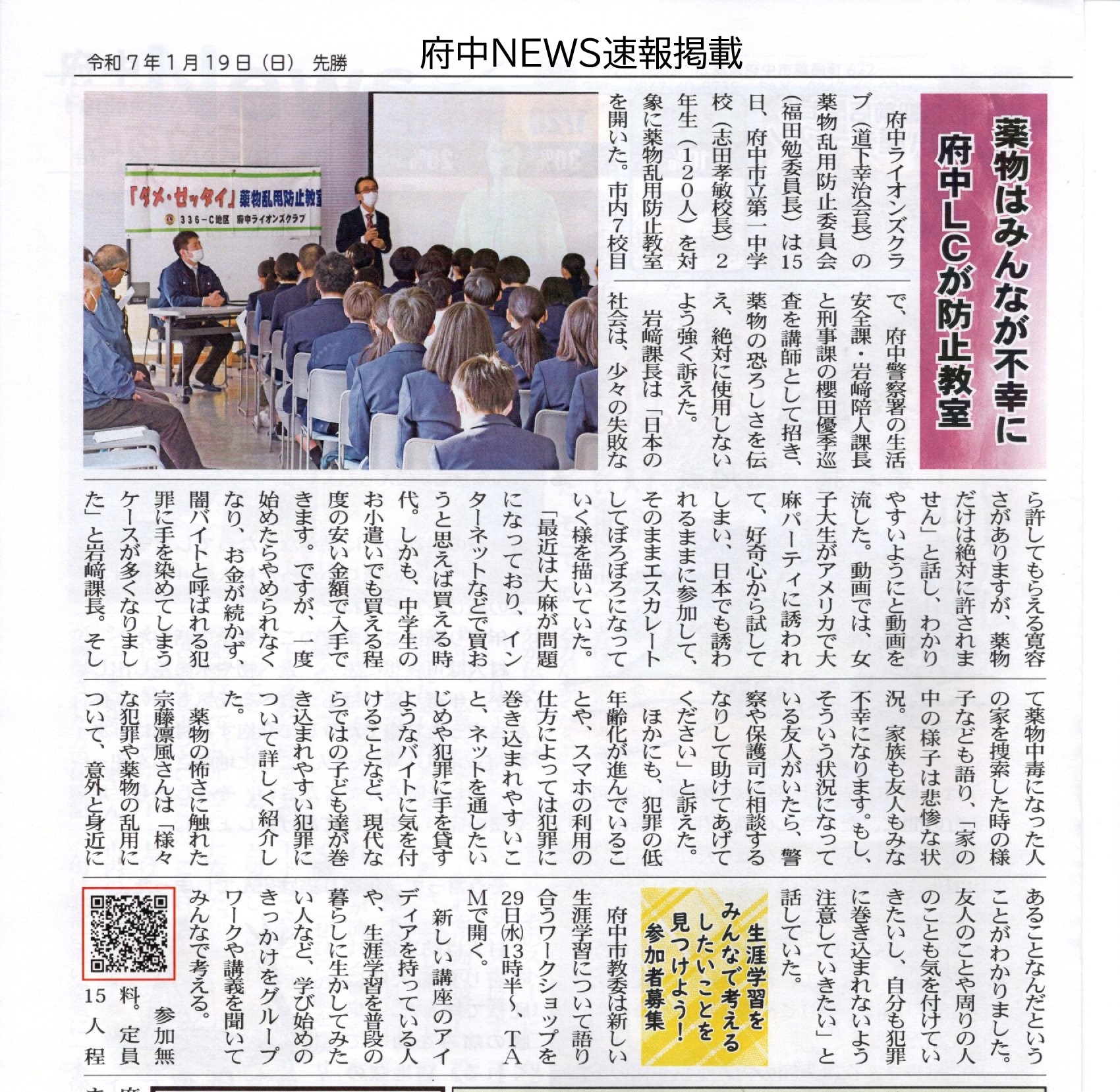 2025/01/15 府中市立第一中学校 薬物乱用防止教室【1R2Z 府中LC】
