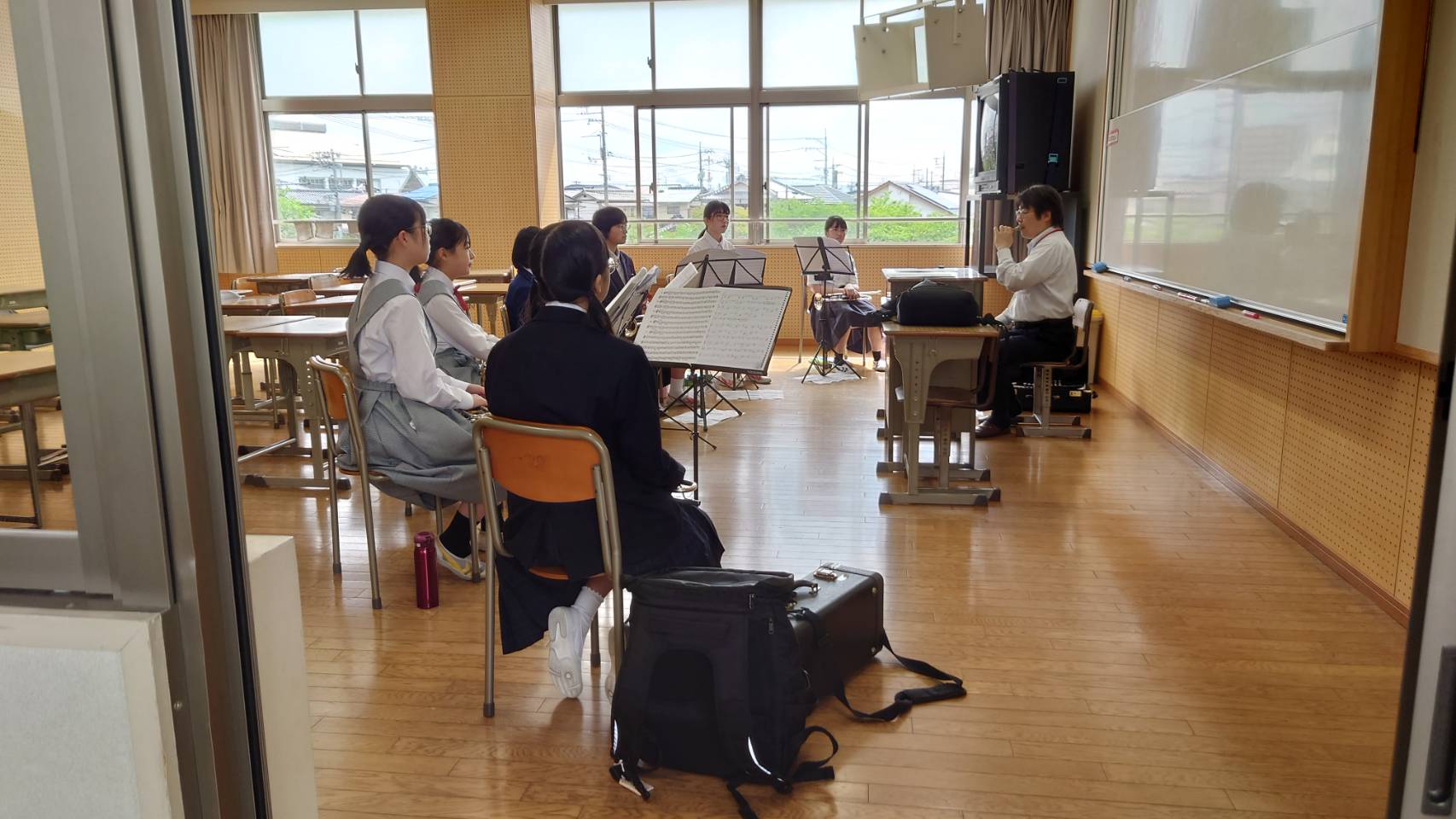 クラブ活動紹介 前日までの雨から一転。5/10(土)心地よい風が気持ちよい日に大竹中学校にて「バンドクリニック」を開催しました。