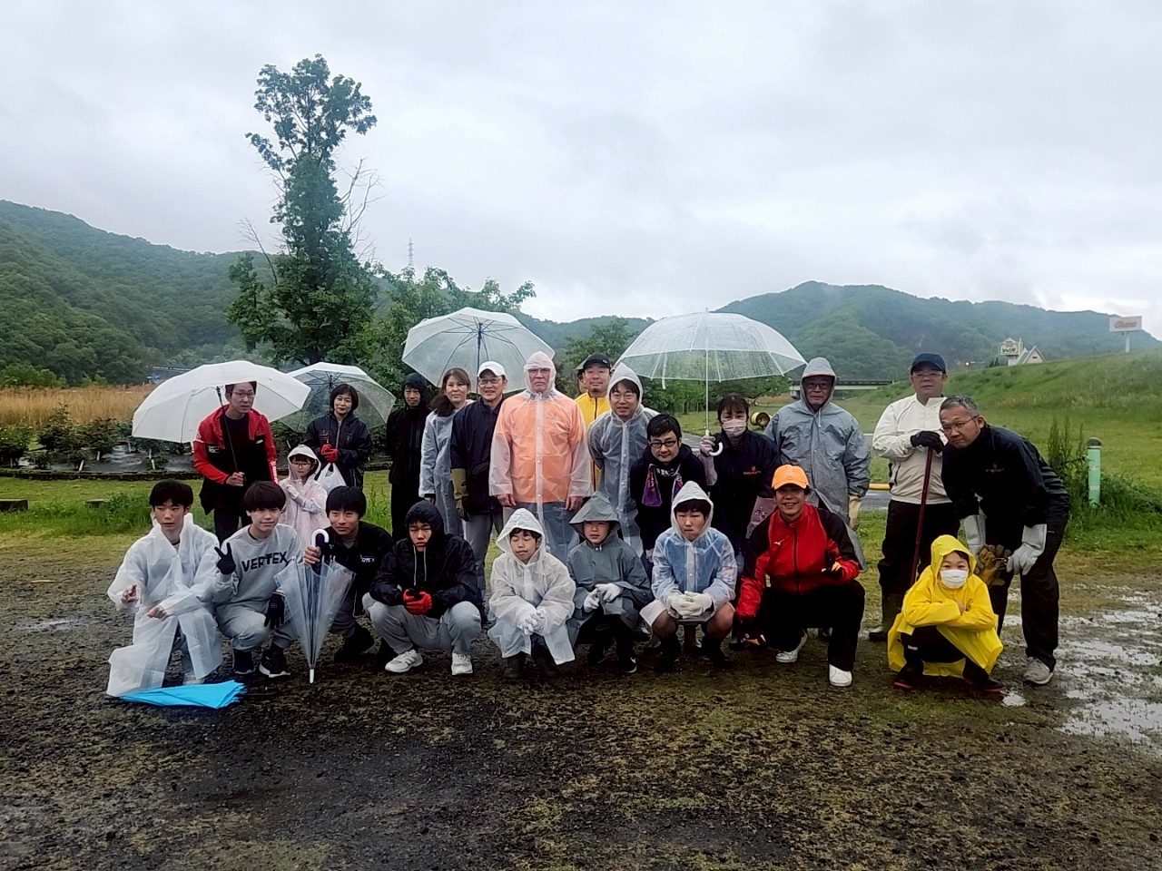 冷たい雨が降る中での作業でしたが、多くの方のご協力をいただき今期作業完了です。