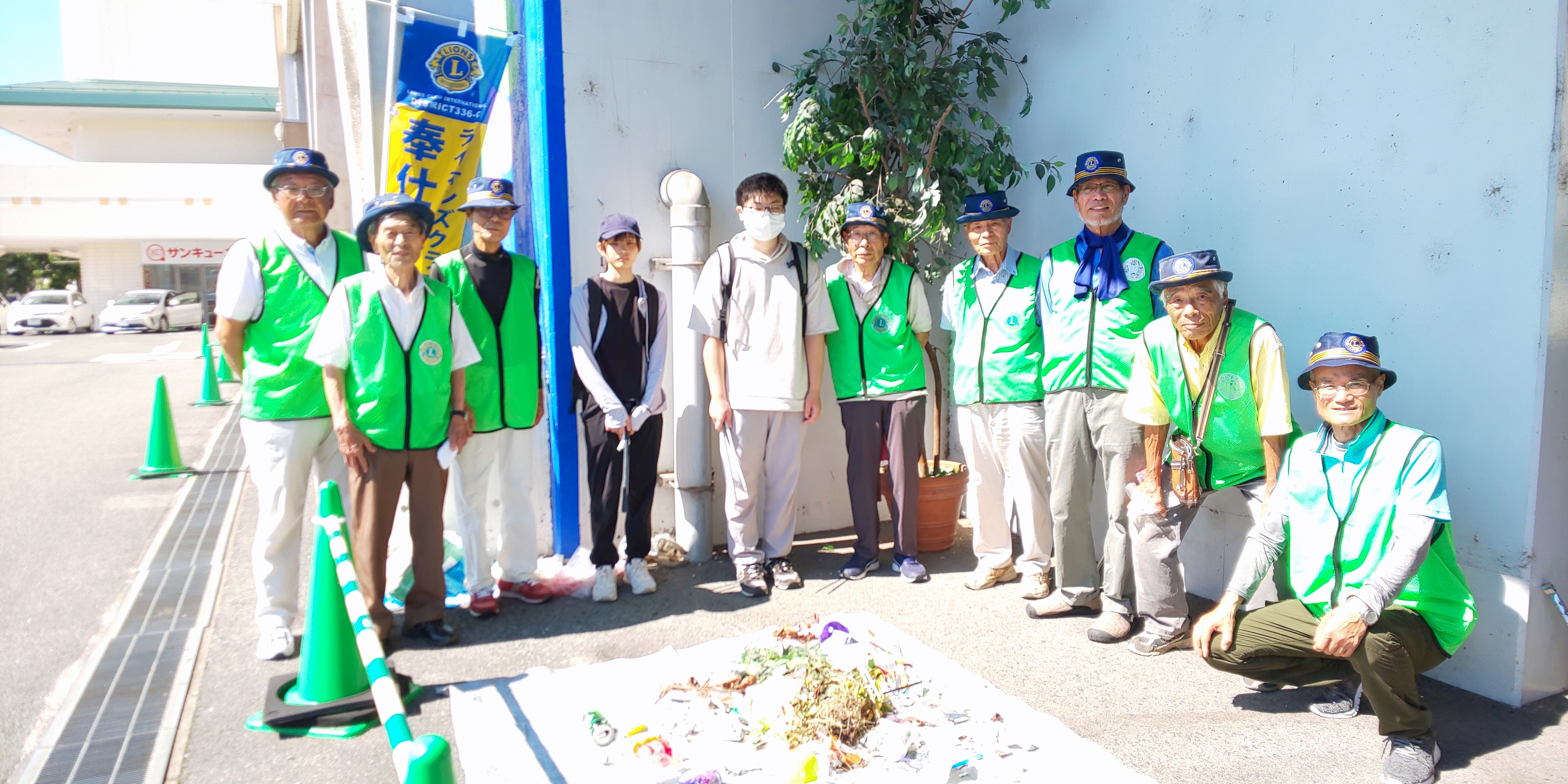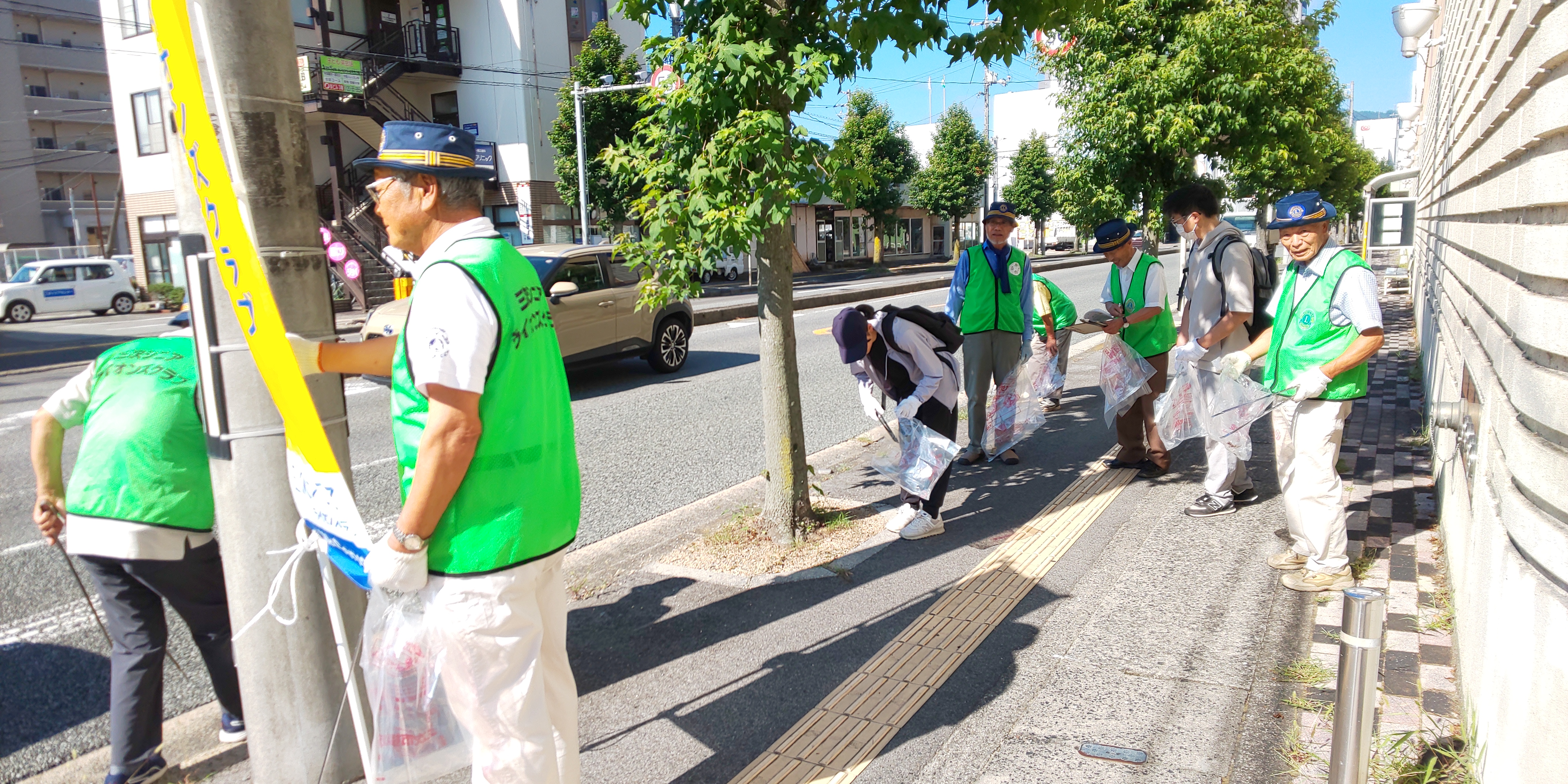 クラブ活動紹介 本日、午前8時30分から三次市中心部の国道183号沿い歩道の清掃活動をしました。今回は三次市社協のボランティア活動に応募された、三次清陵高校と県立三次中学校の生徒さん2人の参加協力があり、会員8人とともにポイ捨てなどのゴミを拾って歩きました。猛暑続きですが、1時間ほどで無事活動を終えることができました。