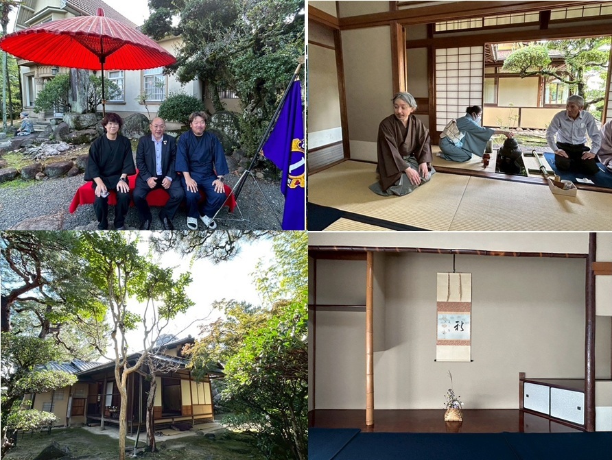 福寿会館玄関へのアプローチ、お茶席受付、くつろぎ席の様子