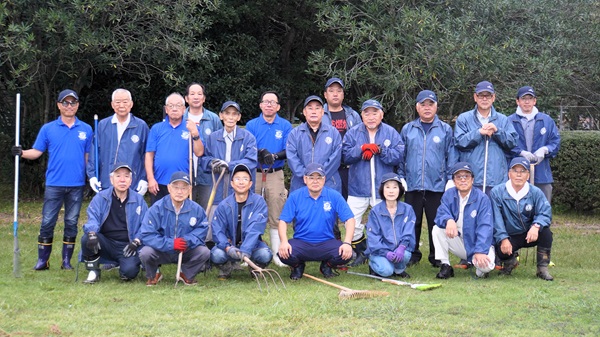 クラブ活動紹介 10/8ライオンズ奉仕デーにちなみ府中市土生町の「ライオンズの森」の除草作業を事前に委託し、会員20名で刈り草とごみを収集し、森山クリーナーの協力により処分完了した。この場所には42年前に府中LC25周年を記念して桜の木が植樹されている。