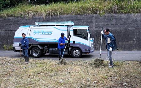 10/8ライオンズ奉仕デーにちなみ府中市土生町の「ライオンズの森」の除草作業を事前に委託し、会員20名で刈り草とごみを収集し、森山クリーナーの協力により処分完了した。この場所には42年前に府中LC25周年を記念して桜の木が植樹されている。