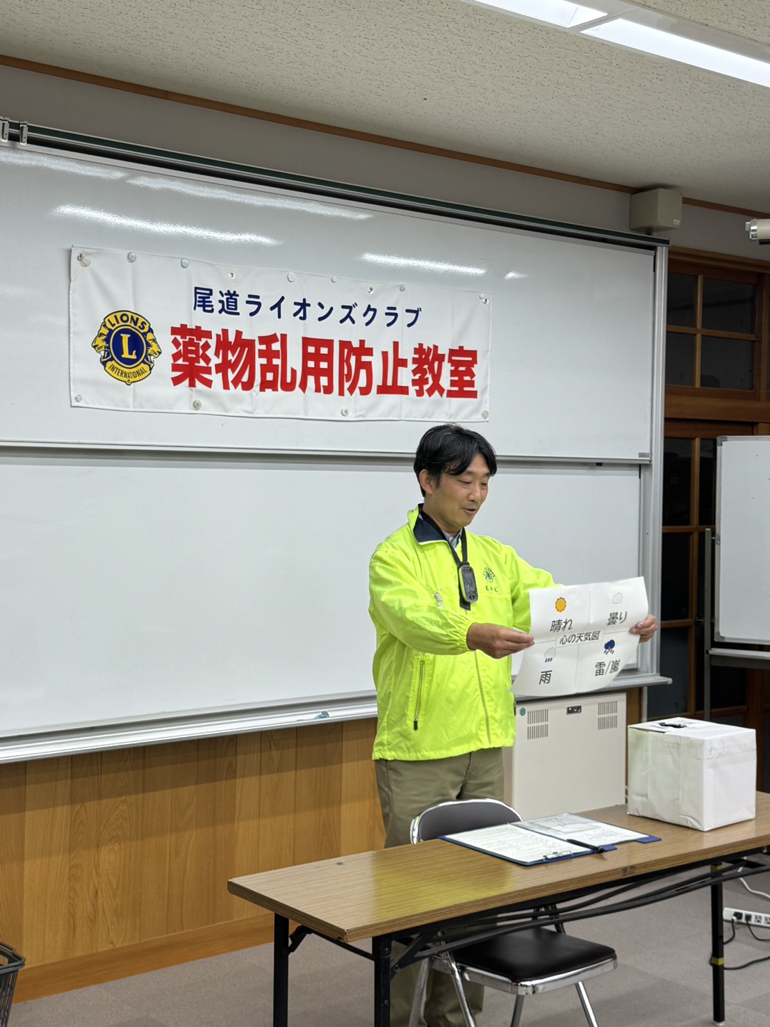 高橋講師により準備した「気分を天気で表す」ワークを通して「心が嵐や雷のように不安定な時に人は薬物などに頼りたくなる」という心理的な側面にもついてもとりいれた教室を実施しました。