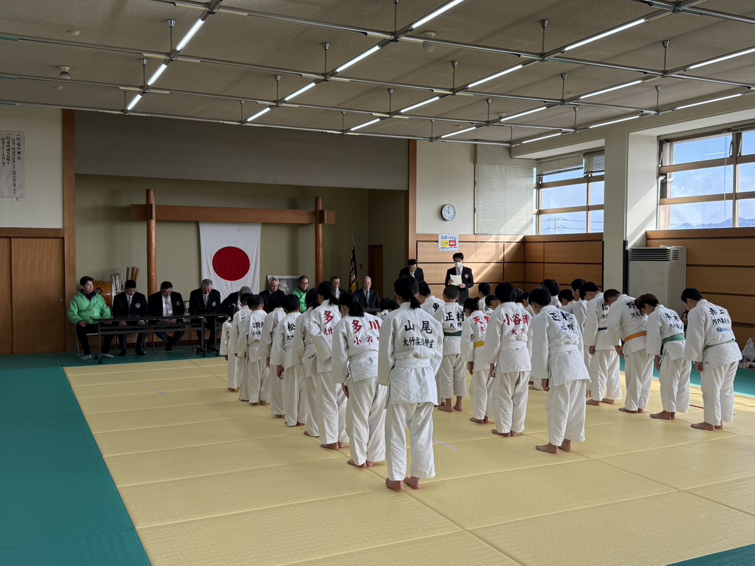 今年度のアクティビィティとして、小雪の舞う1月25日(日)に大竹市新春柔道大会に招待され、「試合用タイマー」の寄贈式に参加しました。