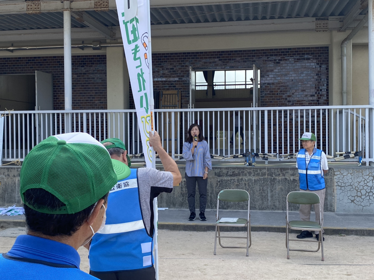 区長のご挨拶を拝聴します(地域をキレイにしたい、その熱い思いを挨拶にこめておられました)