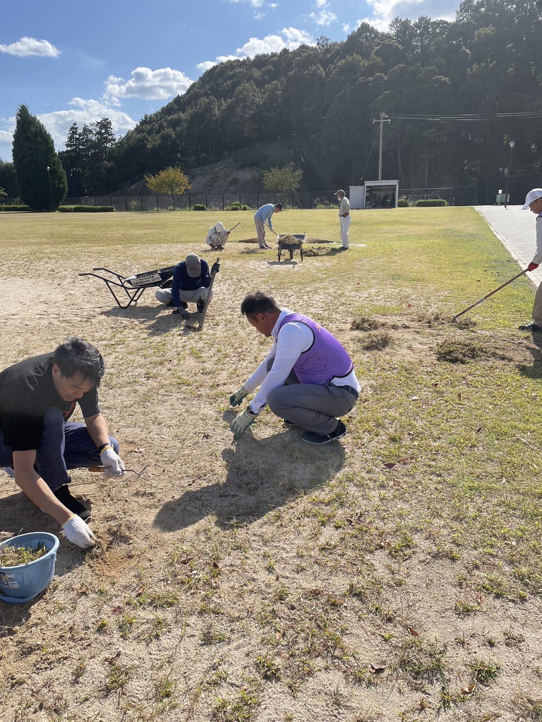 クラブ活動紹介 2023年10月12日(木)第一例会後に50周年記念事業で植えた寺山公園の芝生の手入れ並びに清掃を行いました。