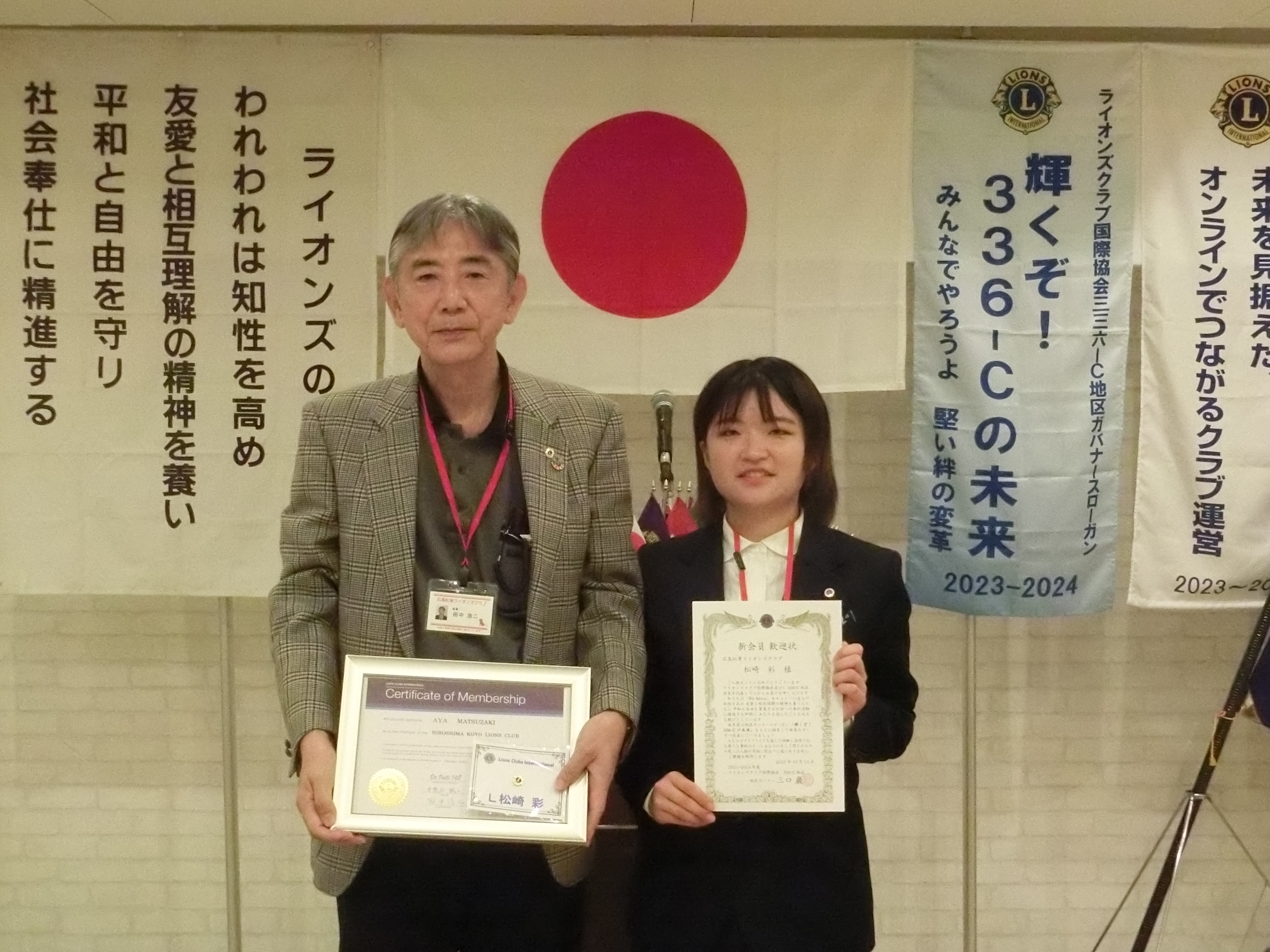 10月14日(土)ひろしま国際ホテルでの第946回例会において、前々回の学生会員3名の入会に引き続き、新たに1名の学生会員の入会式が執り行われました。入会式ではスポンサーである中間谷さんから入会の経緯等についての説明がなされ、田中会長から会員証が手渡されました。現状で学生会員は4名となり、今後、学生会員を中心に行われる予定の薬物乱用防止啓発活動に向けて体制が整いつつあります。
