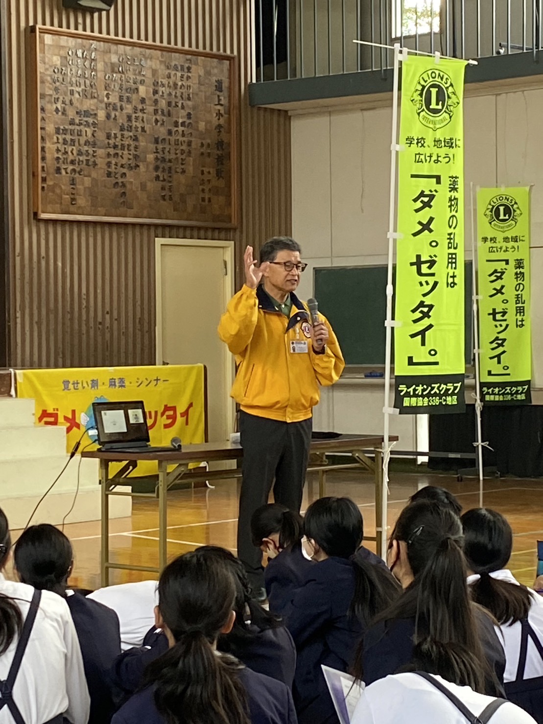 ⬜︎ 神辺LC会長 草浦且行より、薬物乱用防止教室開催のご挨拶及び重要性について、小学生にわかり易く説明がありました。
