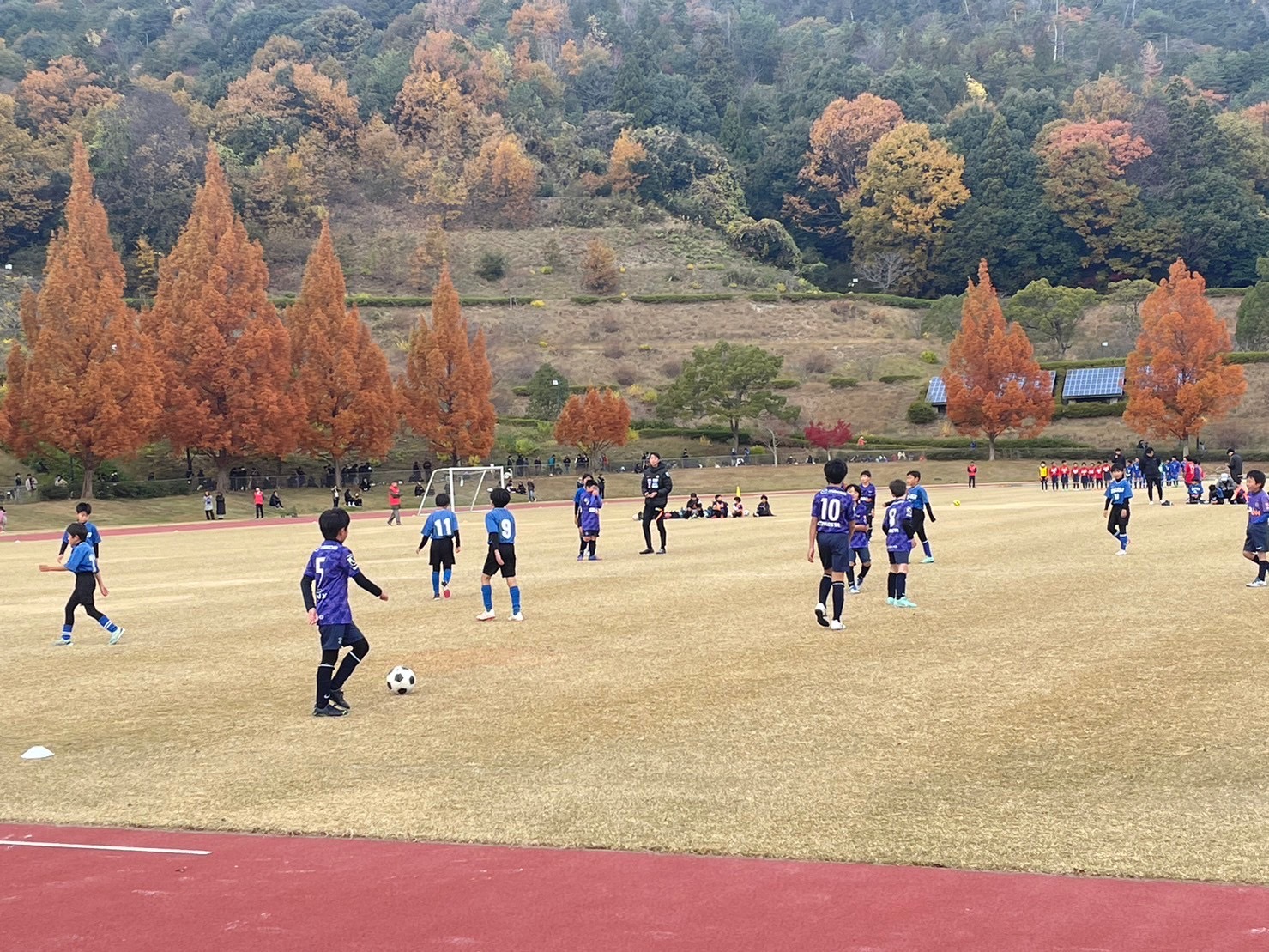 秋色深い広島広域公園補助競技場で、子どもたちの元気な声が響きわたりました。当クラブがサンフレッチェ広島の協力を得て毎年秋に開催している、「広島フェニックス サンフレッチェカップ」は、今年で19回を迎えました。この日のために練習を重ねたサッカー少年少女たちが、憧れの天然芝の上で、元気にボールを追いかけ、蹴り、受け、日頃の練習の成果を競いました。
