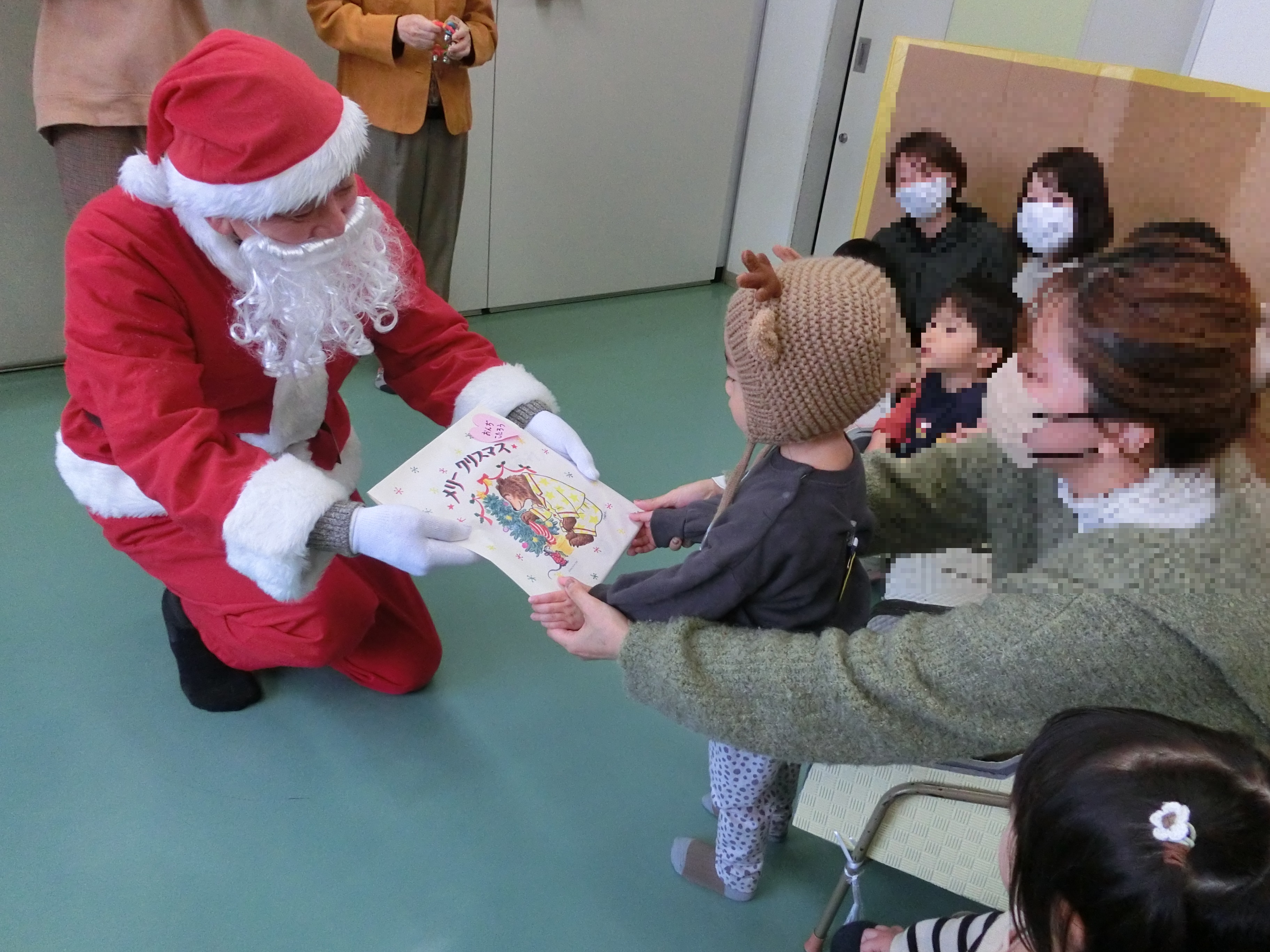 12月25日(月)に児童福祉施設である広島市北部こども療育センターのクリスマス会に学生会員3名を含むメンバー7名で参加しました。父兄のダンスや色々な出し物の後、メンバー2名がサンタクロースに扮して園児全員にクリスマスプレゼントの絵本を手渡しで配り、とても楽しいクリスマス会となりました。