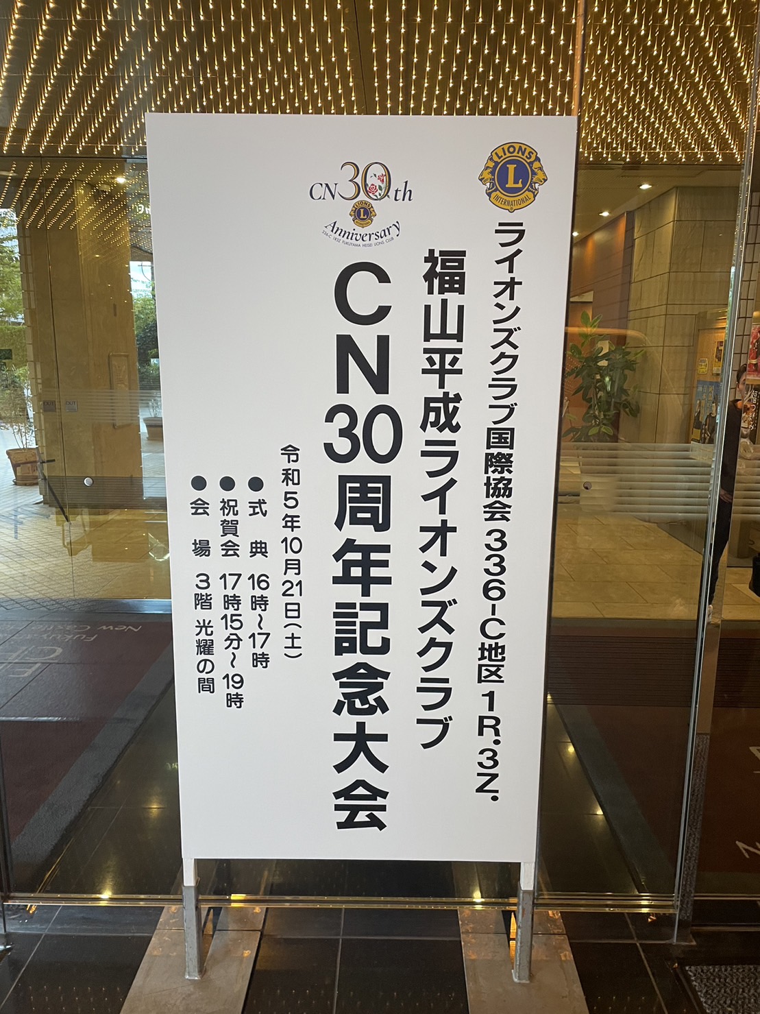 福山平成LCは数多くの関係者に支えられながら30年の節目を今日迎えられたことに会員一同厚く御礼申し上げます。場所はニューキャッスルホテル3階光耀の間のうち東・中を使用し、福山市長ならびに三口地区ガバナーをはじめ約150名の方々に足を運んでいただきました。記念式典では色々ハプニングがありましたが無事に平成LCらしく行われたと感じております。そして次の節目に向けて更なる飛躍を目指し会員増強・退会防止に力を入れ新らしくスタートする日でもありました。