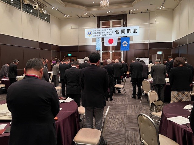 親子クラブでの合同例会を開催しました。コロナ禍中止中に各クラブの例会場が変更となり大勢収容できる例会場もかぎられ、昨年度よりメルパルク広島にて再開しています。能登半島地震で被害を受けた方々への黙祷から始まりました。ご冥福をお祈りいたします。