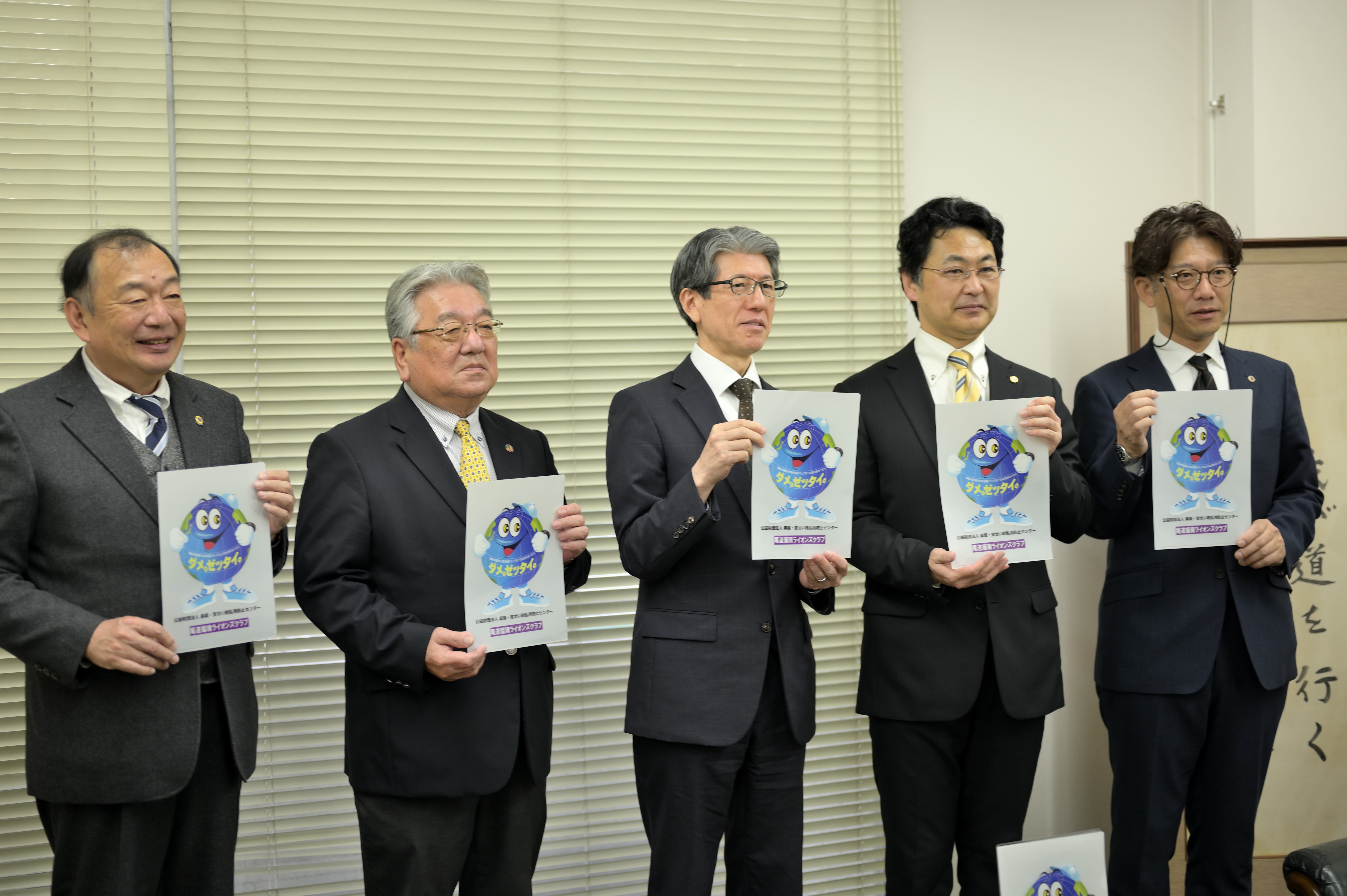 2023年10月21日、CN60周年記念事業として、市内中学3年生を対象に、薬物乱用防止啓発のため、ダメ、ゼッタイ。クリアファイル約千部を市教育委員会に寄贈しました。市教育委員会を太田会長、九十九CN60周年記念大会実行委員長、阿形記念事業部会長、長尾大会幹事で市教育委員会を訪問し、宮本教育長に目録とクリアファイルをお渡ししました。