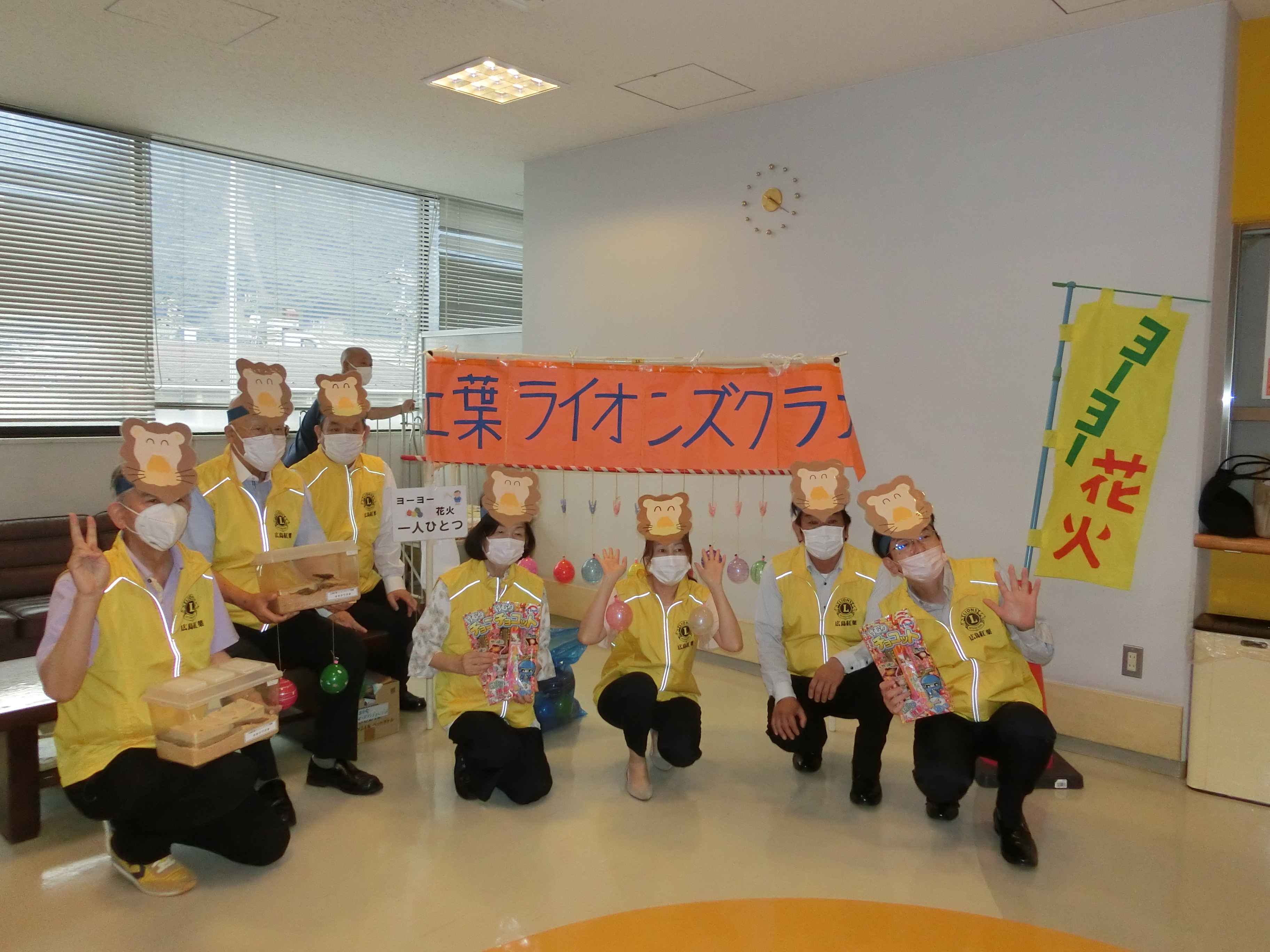 クラブ活動紹介 7月13日(土)に児童福祉施設である広島市北部こども療育センターの夏祭りに参加しました。当日は、メンバーがお土産として持参した花火、水ヨーヨー、おもちゃ他を園児全員にプレゼントして、楽しい夏祭りとなりました。土方所長、佐々木園長をはじめとして職員の皆さま、ご父兄の皆さまにとても感謝されました。