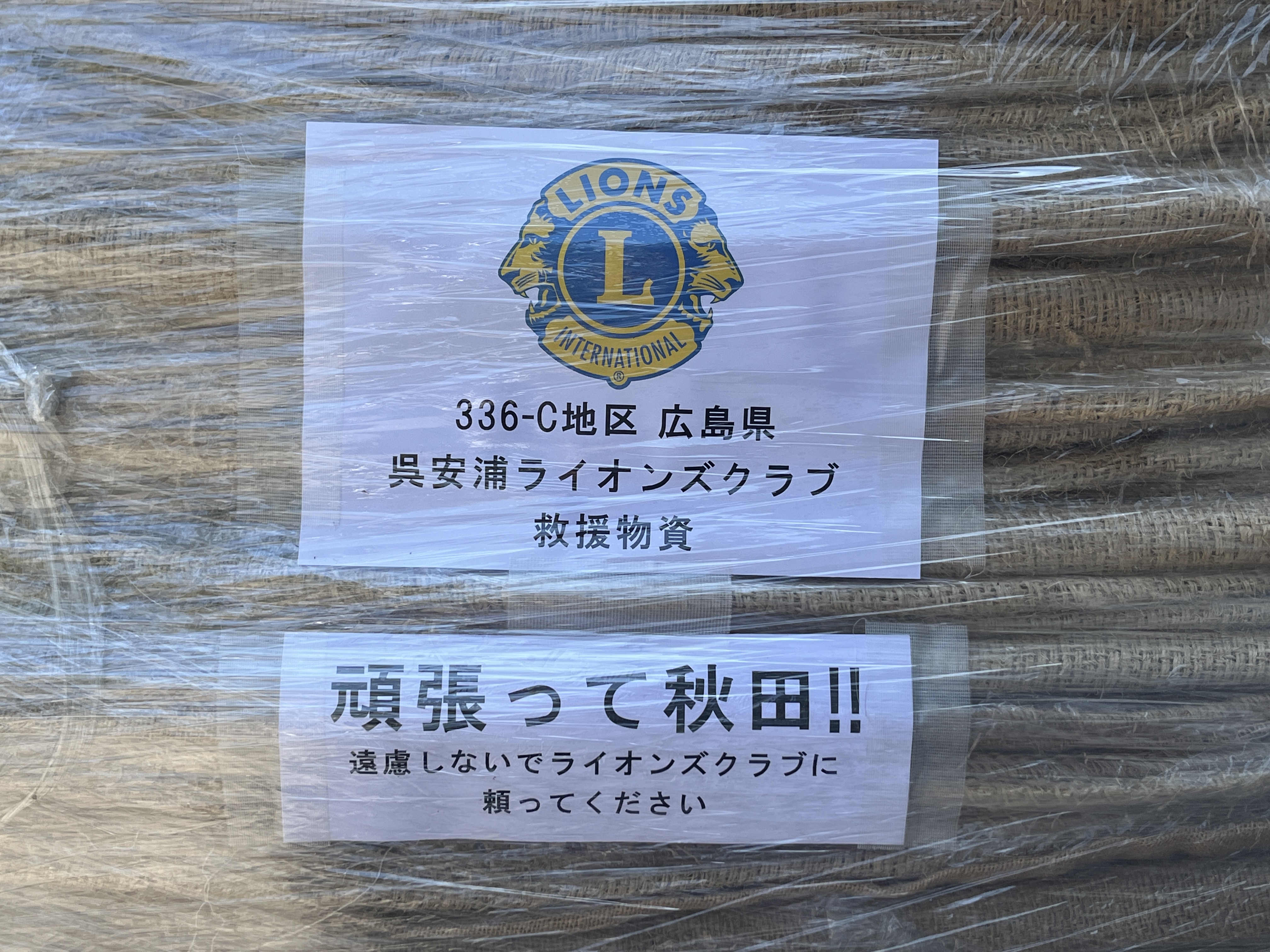 この度、当クラブは豪雨災害で甚大な被害を受けた秋田へドンゴロス(麻袋)2パレット、救援物資として贈らさせていただきました。