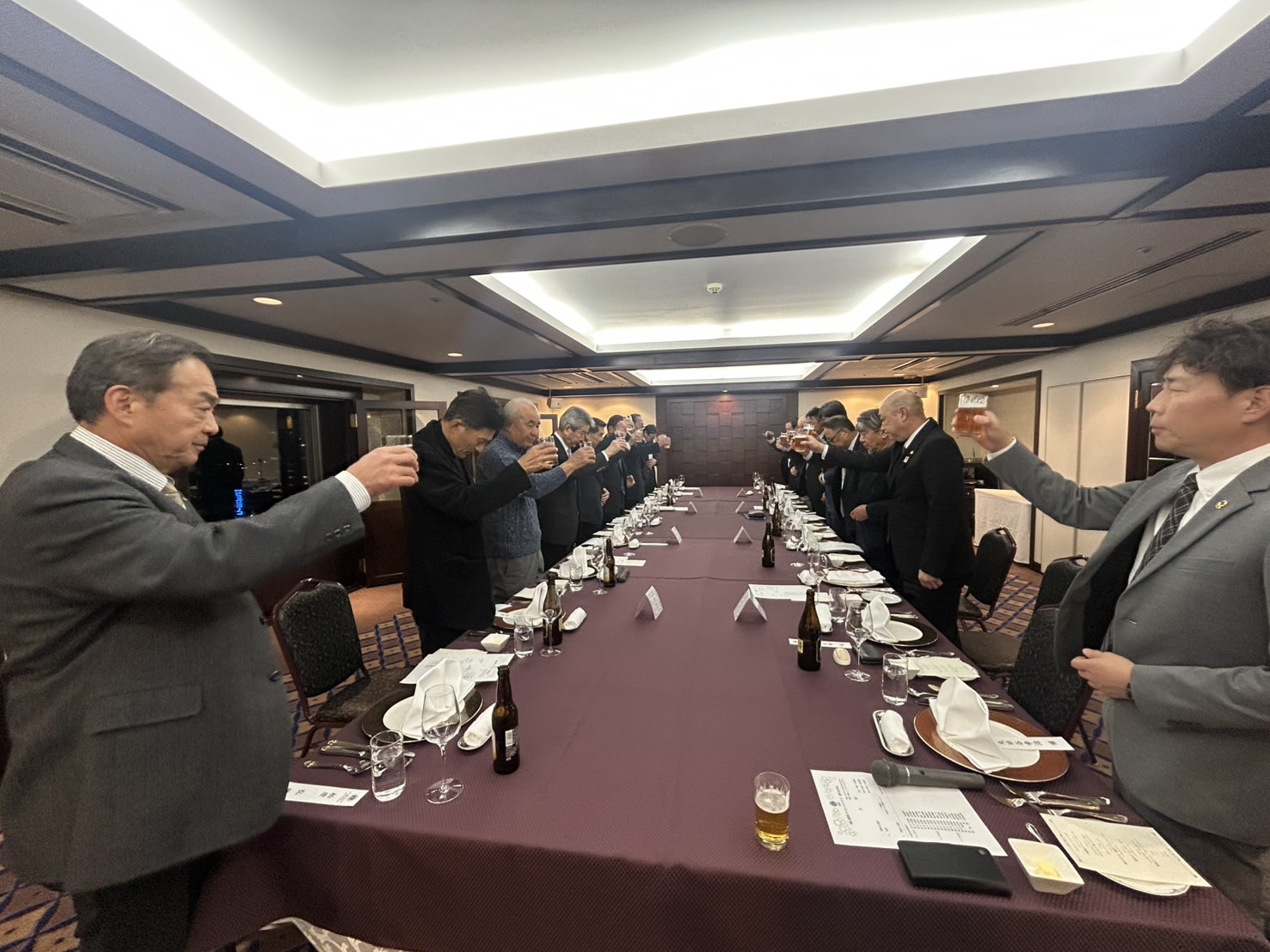 福山ニューキャッスルホテル16階ふじの間にて歴代会長会が開催されました。63代 畑田直毅会長の開宴のあいさつに始まり、乾杯のご発声は髙田健司地区名誉顧問にいただき祝宴がはじまりました。